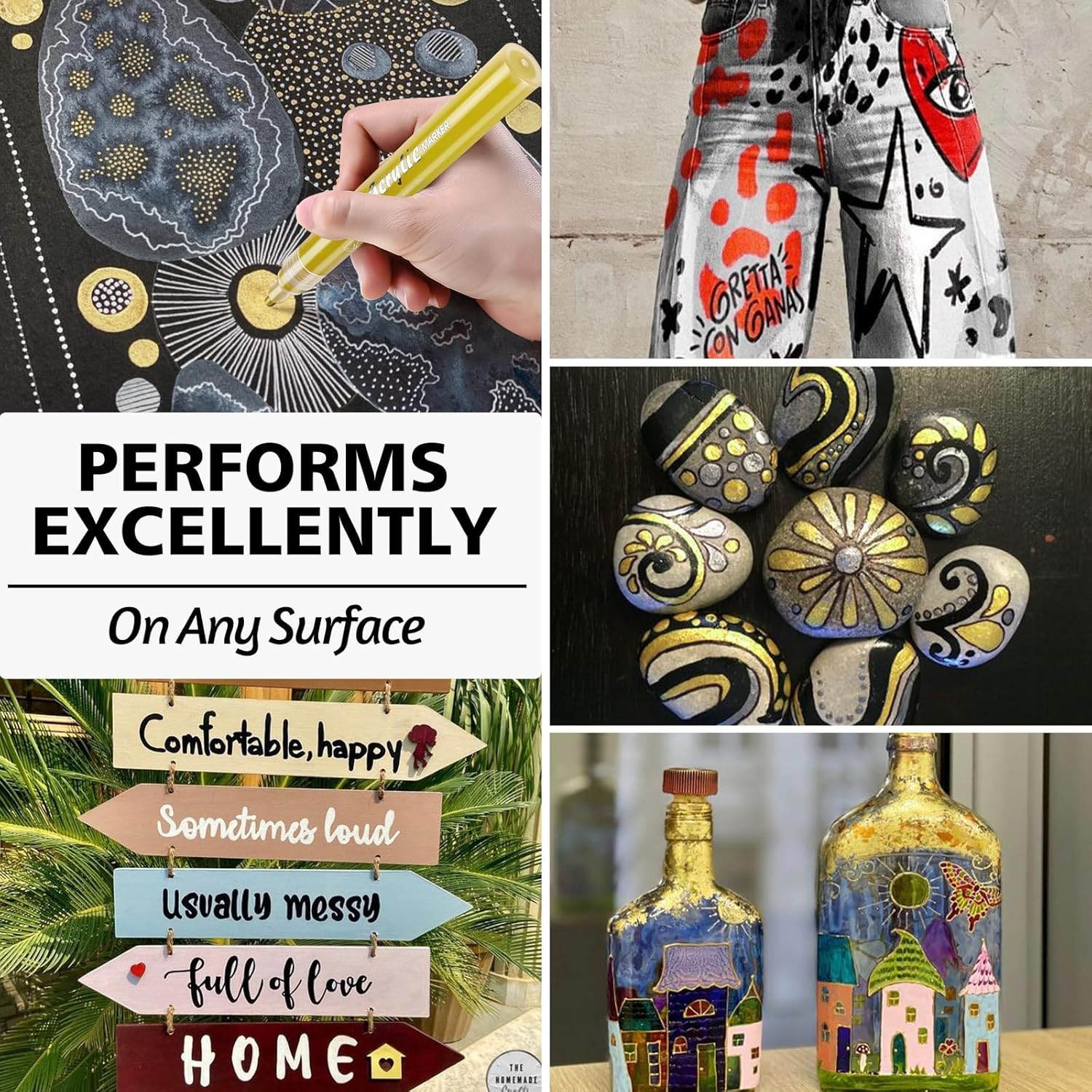 - VERSATILE AND EASY TO USE: These acrylic paint markers are perfect for creative doodling and coloring on rocks, DIY art projects, crafts, and furniture. They are also ideal for adding decorative details, highlights, and outlines to various art projects, as well as for writing, marking, and personalizing on any item. Suitable for artists, students, teenagers, and rock painting enthusiasts alike, whether for professional creations or beginner projects.
