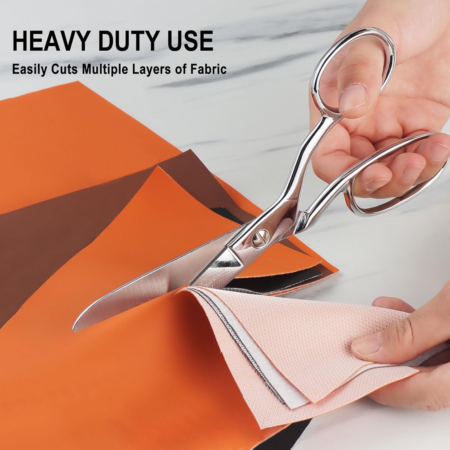 - Effortlessly cuts through multi-layer fabrics, leather, denim, and silk