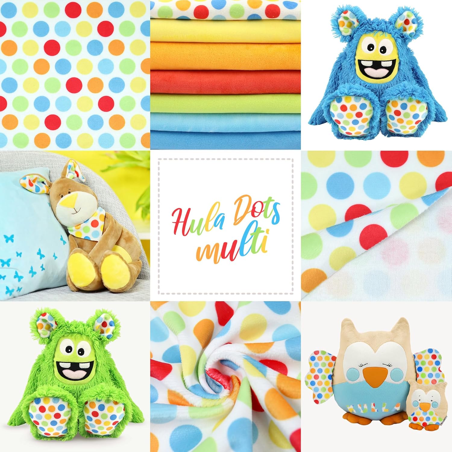 kullaloo Plush Fabric | Patterned Minky Fabric for Sewing Hula DOTS Multi | Super Soft Cuddle Material | 39.5x29.5 | Plushies, Baby Blankets, Pillows, Dog Beds, Beanies, Baby Accessories, Apparel