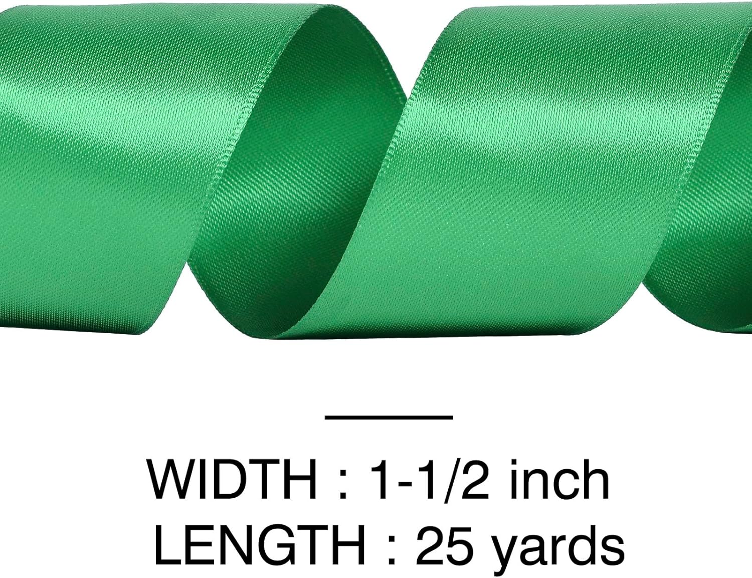 YAMA Green Double Faced Satin Ribbon, 1 1/2 Inch 25 Yards, Great for Crafts Bows Flower Bouquet Wedding Home Decor Gift Wrapping