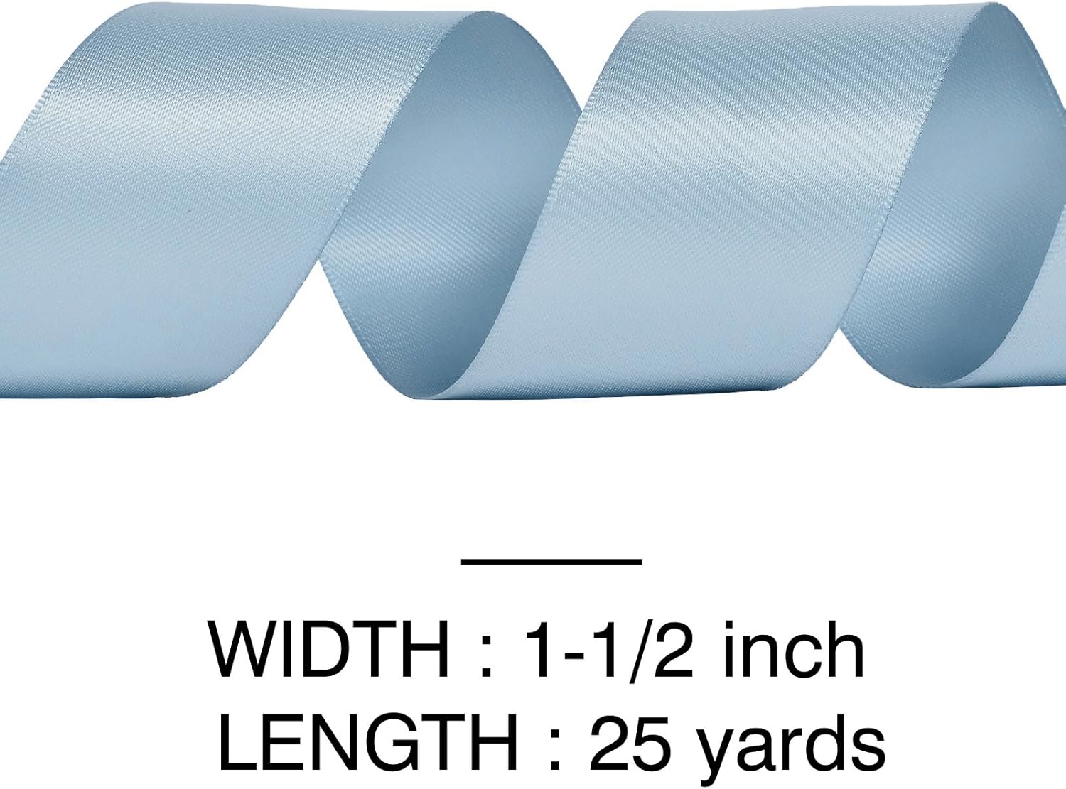 YAMA Dusty Blue Double Faced Satin Ribbon, 1 1/2 Inch 25 Yards, Great for Crafts Bows Flower Bouquet Wedding Home Decor Gift Wrapping
