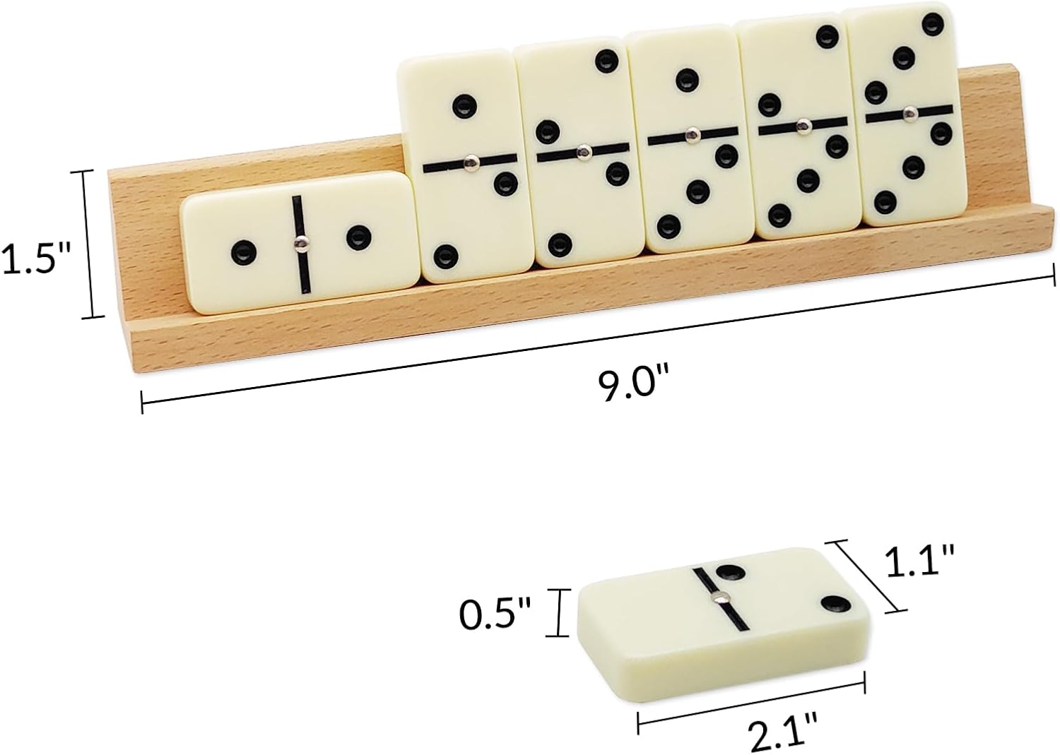 - 4 Wooden Racks: Custom-designed for double 6 dominoes set, holding 7 tiles each. Made from high-quality, durable, and odorless beech wood.