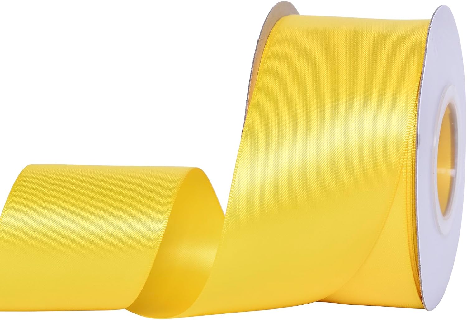 YAMA Yellow Double Faced Satin Ribbon, 2 Inch 25 Yards, Great for Crafts Bows Flower Bouquet Wedding Home Decor Gift Wrapping