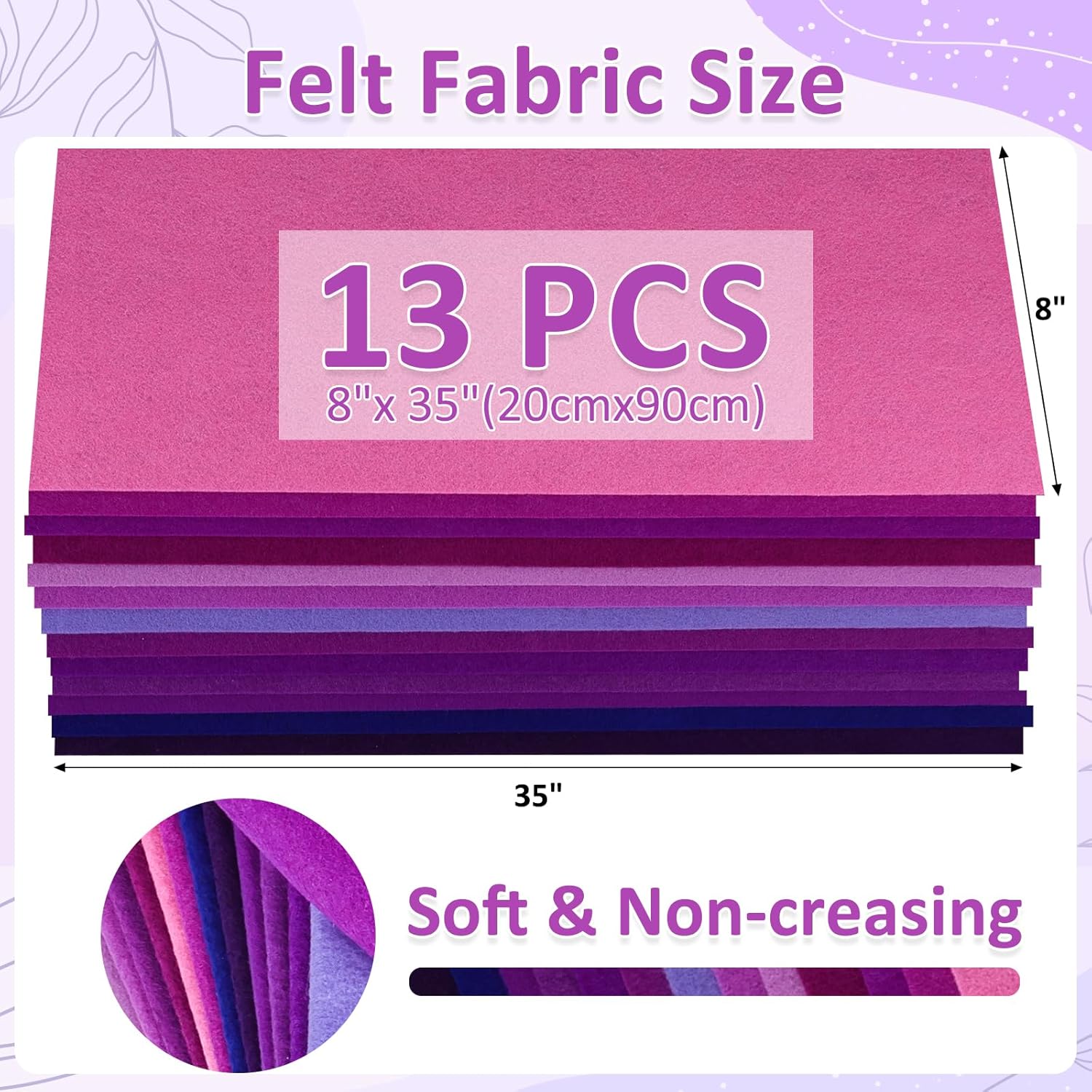 XSEINO 13 Rolls 8"x35" 1.4mm Thick Soft Felt Fabric Sheet 13 Assorted Purple Series Colors Felt Pack for DIY Craft Sewing Squares Nonwoven Patchwork