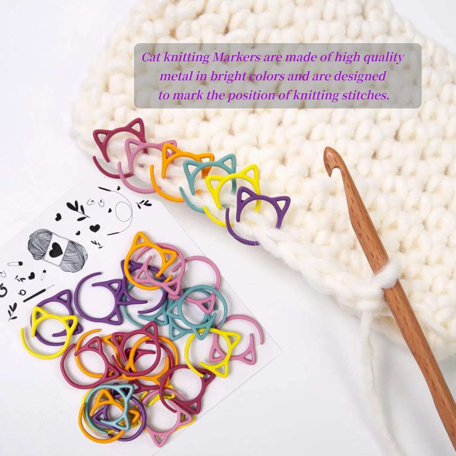 Stitch Markers for Crocheting Cat Stitch Markers with Box Metal Spiral Stitch Markers for Knitting Crochet Stitch Markers Rings Knitting and Crochet Notions (30)