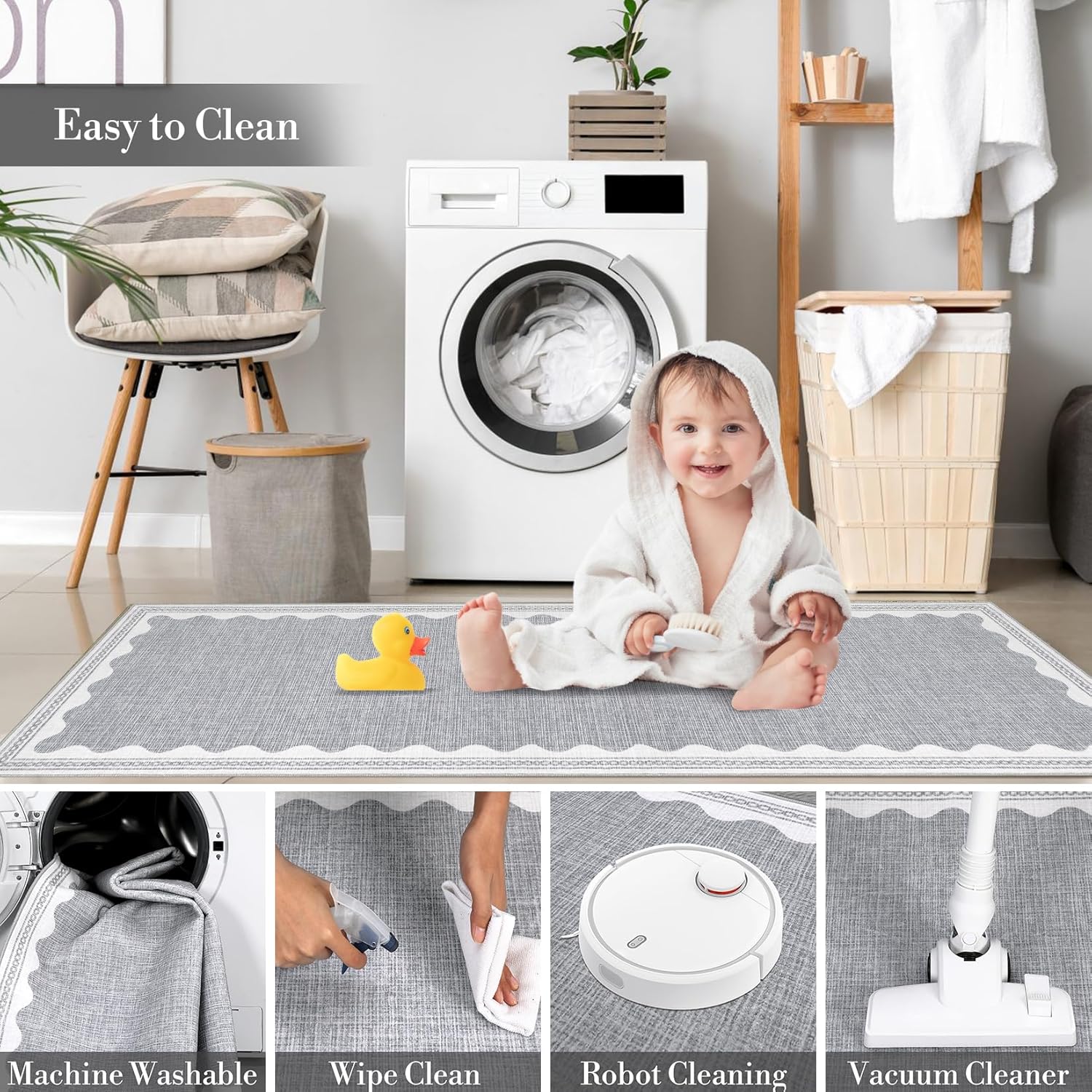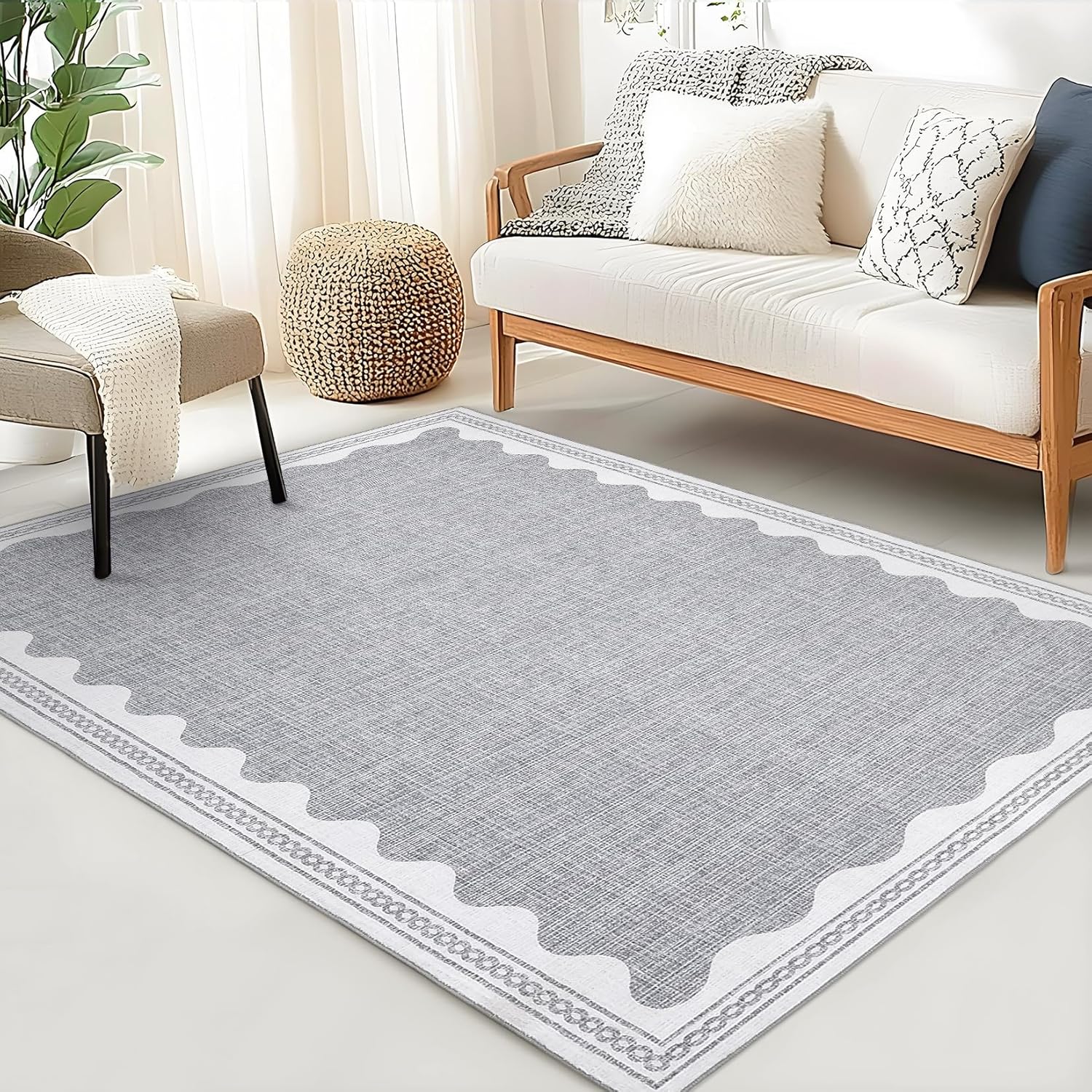 - 【Timeless Unique Scalloped Design】It is a gorgeous washable and foldable rug featuring a minimal neutral cream tone with a scalloped edge design. A timeless, modern, and unique design to add to any space.Due to the nature of printing, the 3x5 rugs design may vary slightly from the product photos, making each scalloped rug unique.
