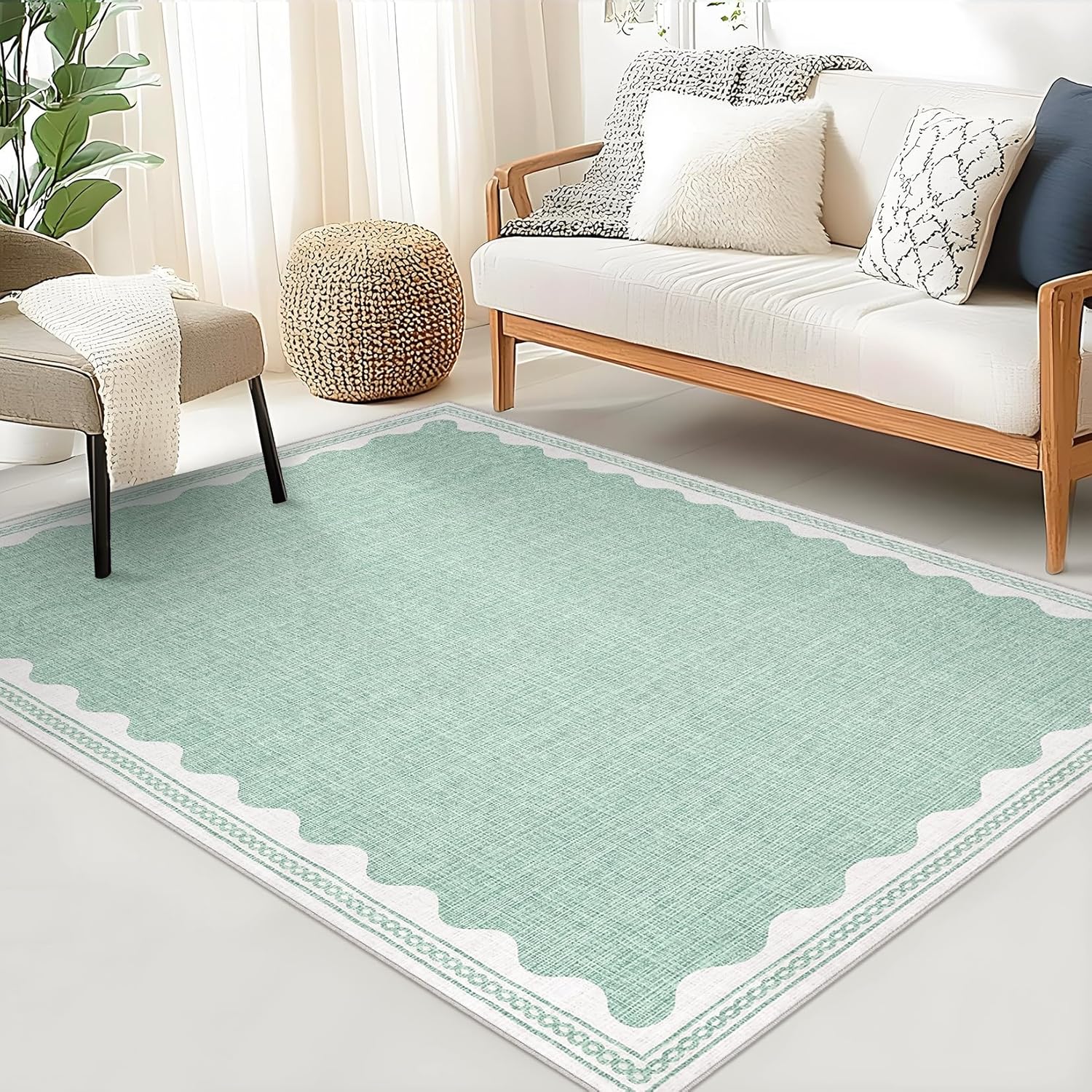 - 【Timeless Unique Scalloped Design】It is a gorgeous washable and foldable rug featuring a minimal neutral cream tone with a scalloped edge design. A timeless, modern, and unique design to add to any space.Due to the nature of printing, the 3x5 rugs design may vary slightly from the product photos, making each scalloped rug unique.