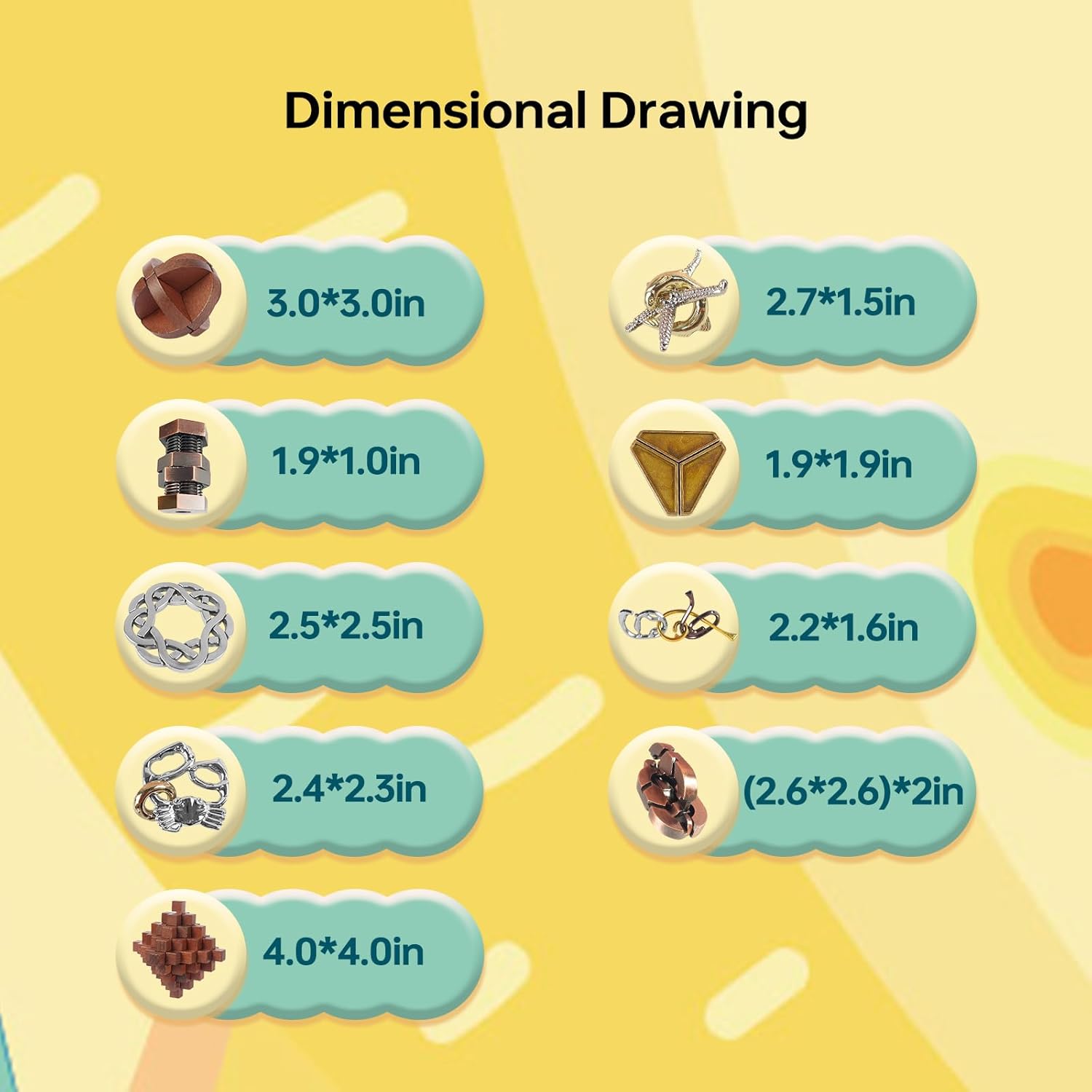 - [BRAIN TEASER PUZZLES ADULTS, TEENS, AND KIDS] Zinc alloy 3D metal puzzles and wooden puzzles are smooth for brain game, puzzles set do not easily bend or break even when thrown or stepped on. Assembly puzzles and disentanglement puzzles are a healthier way to passing time, practice focus and concentration, get them as an IQ test challenge game in limited time, bring lots of Logical fun.