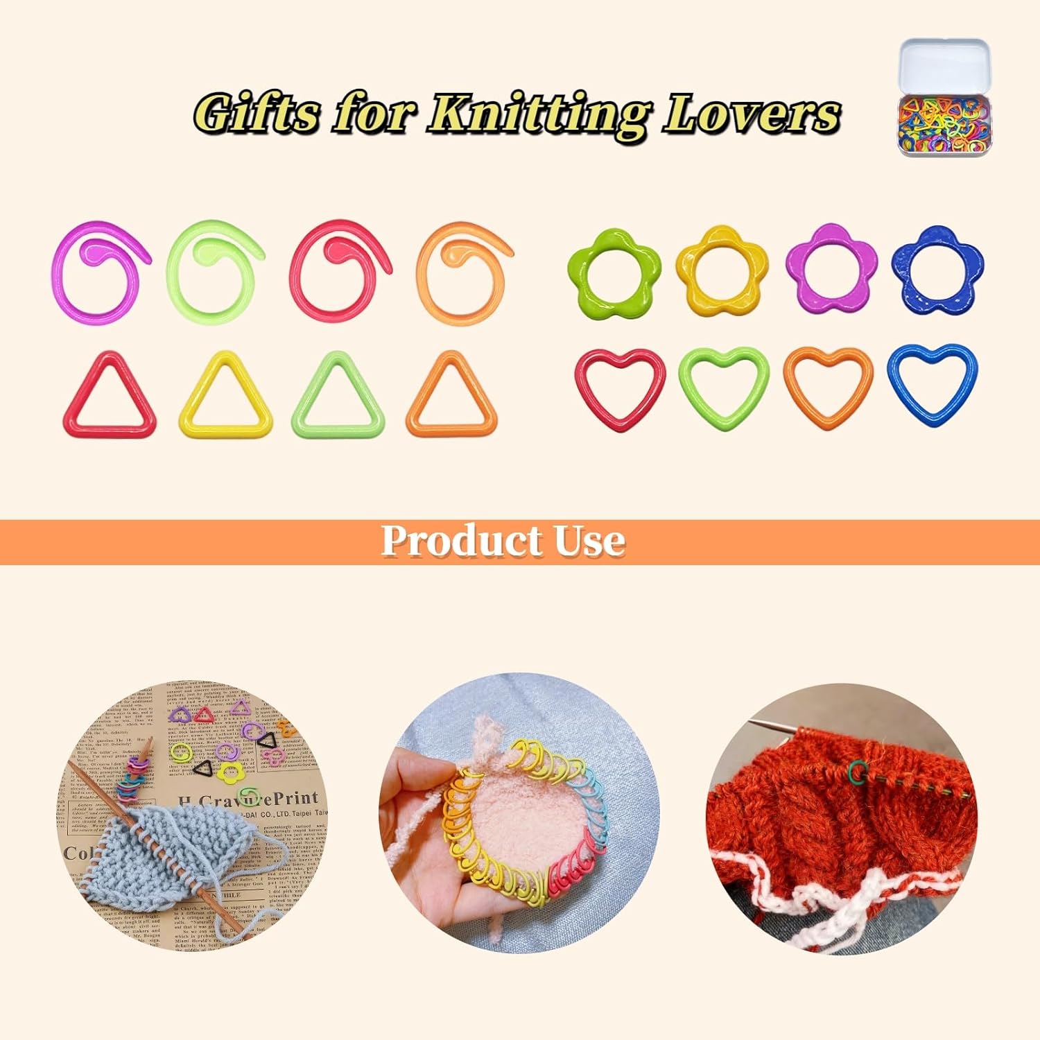 Metal Stitch Markers,Colorful Crochet Stitch Markers,Knitting Stitch Markers with Storage Case,Crochet Gift for Knitting Weaving Lovers (4 Styles)