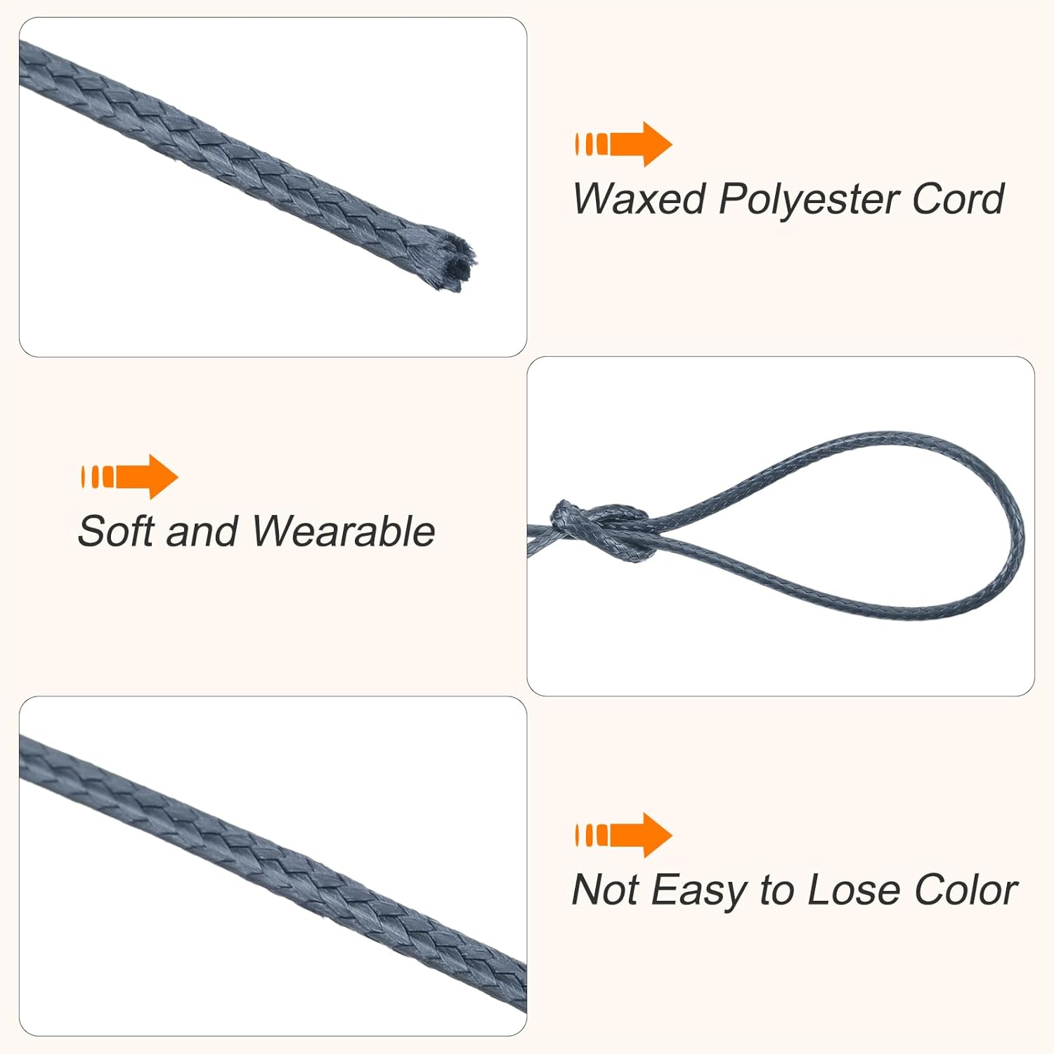 MECCANIXITY Waxed Cord 1.2mm Waxed Polyester Cord 175 Yard Wax String for Bracelet Making,Necklaces, Beading,Jewelry Making and DIY Crafts(Dark Gray)