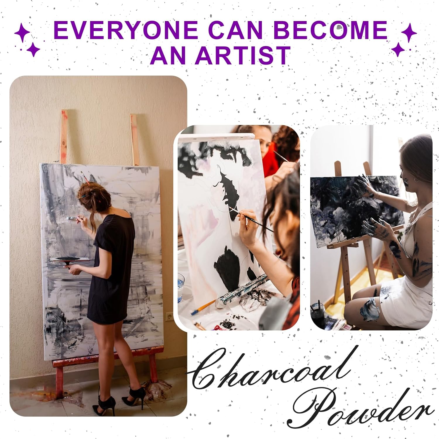 - Easy Coloring - Charcoal powder for artists, suitable for mixed with painting materials, such as pigments, watercolors, etc. Simple to use and color quickly. Professional charcoal for drawing, strong coverage, natural transition. Suitable for large area coloring.