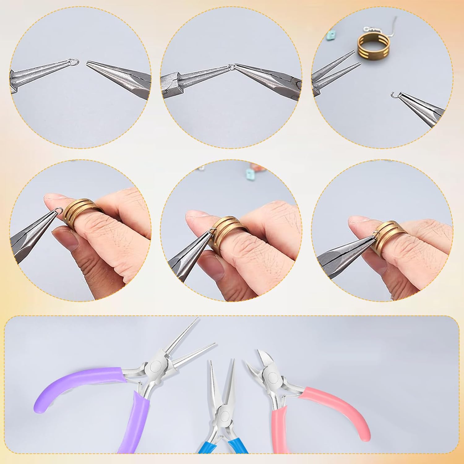- Multifunction: Blue needle nose pliers are ideal for grabbing, bending, crimping, opening and closing jump rings, holding small items and shaping wires, purple handle round jewelry pliers are most commonly used to form cycles in wires, pink handle cutter pliers are ideal for cutting thin metal wires or flexible jewelry wires
