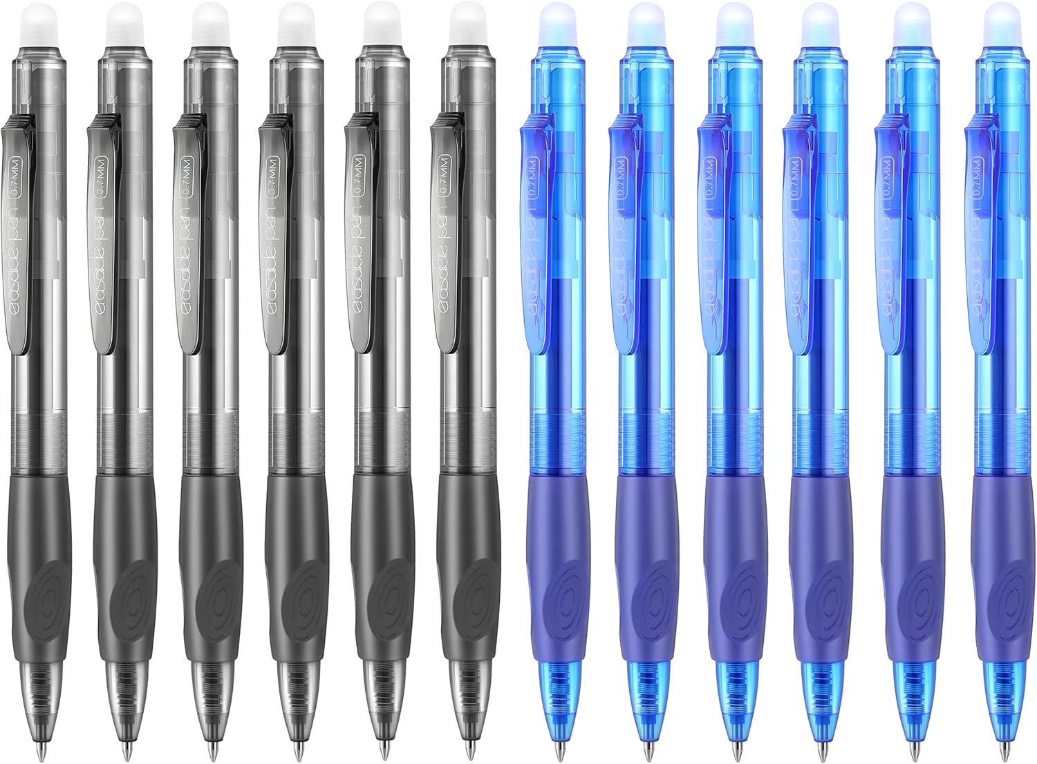 Aozora Erasable Pens Click Fine Point 0.7 mm Retractable Erasable Gel Pens for Completing Sudoku and Crossword Puzzles 12 Pack (Black&Blue)