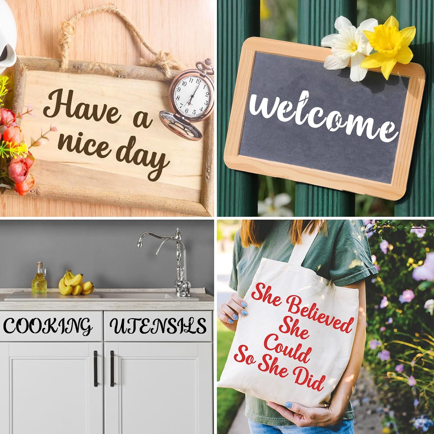 - 【Design and Easy to use】: those art stencils are easy to align for quick and precise painting, just simply place them on flat objects, paint them with a brush or spray them with an airbrush, and you can DIY words and numbers to create exquisite meaningful texts.