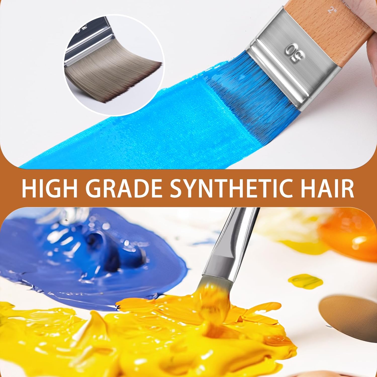 - High-Quality Synthetic Bristles: The soft synthetic bristles are great for load capacity and control of colors, consistent smooth flow of paint. while maintaining excellent elasticity and shape retention. Sturdy enough not easy to bend or split with pressure. They are easy to clean, rinse and look as good as new, making them suitable for long-term use.