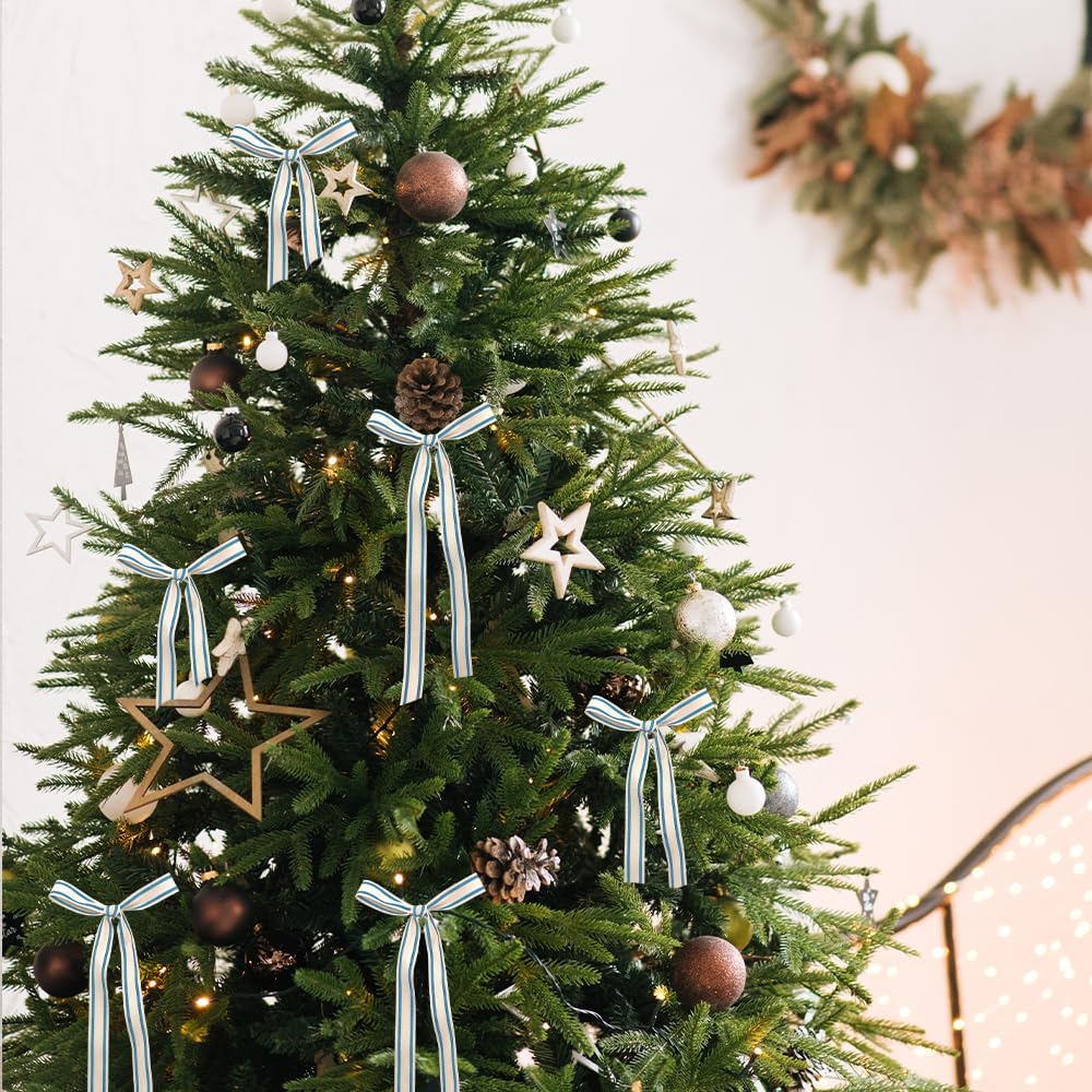 - CLASSIC DESIGN: This holiday craft ribbon features a natural blue striped pattern with a webbing grid texture, making it perfect for wedding decorations; Natural heavy duty design can bring joy and celebration to any project, suitable for people of all ages