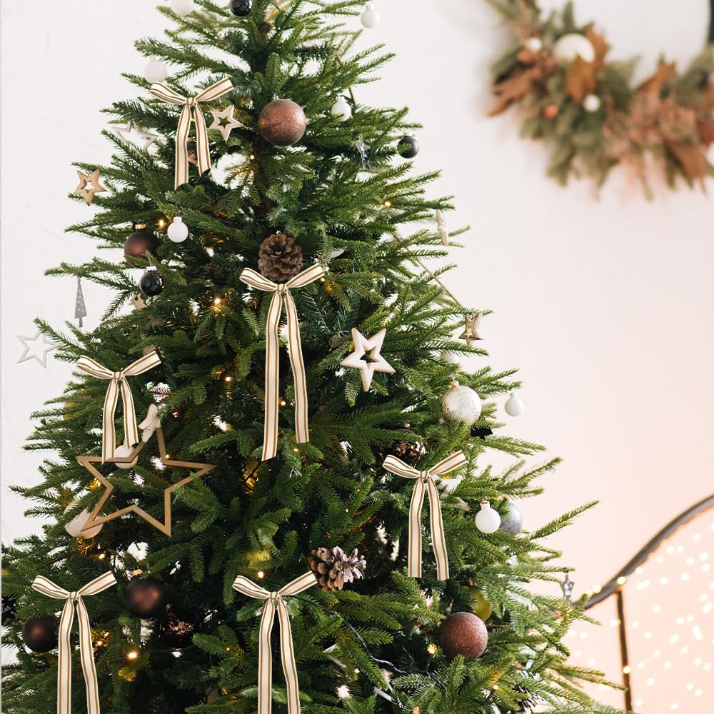 - CLASSIC DESIGN: This holiday craft ribbon features a natural golden striped pattern with a webbing grid texture, making it perfect for Christmas decorations; Natural heavy duty design can bring joy and celebration to any project, suitable for people of all ages