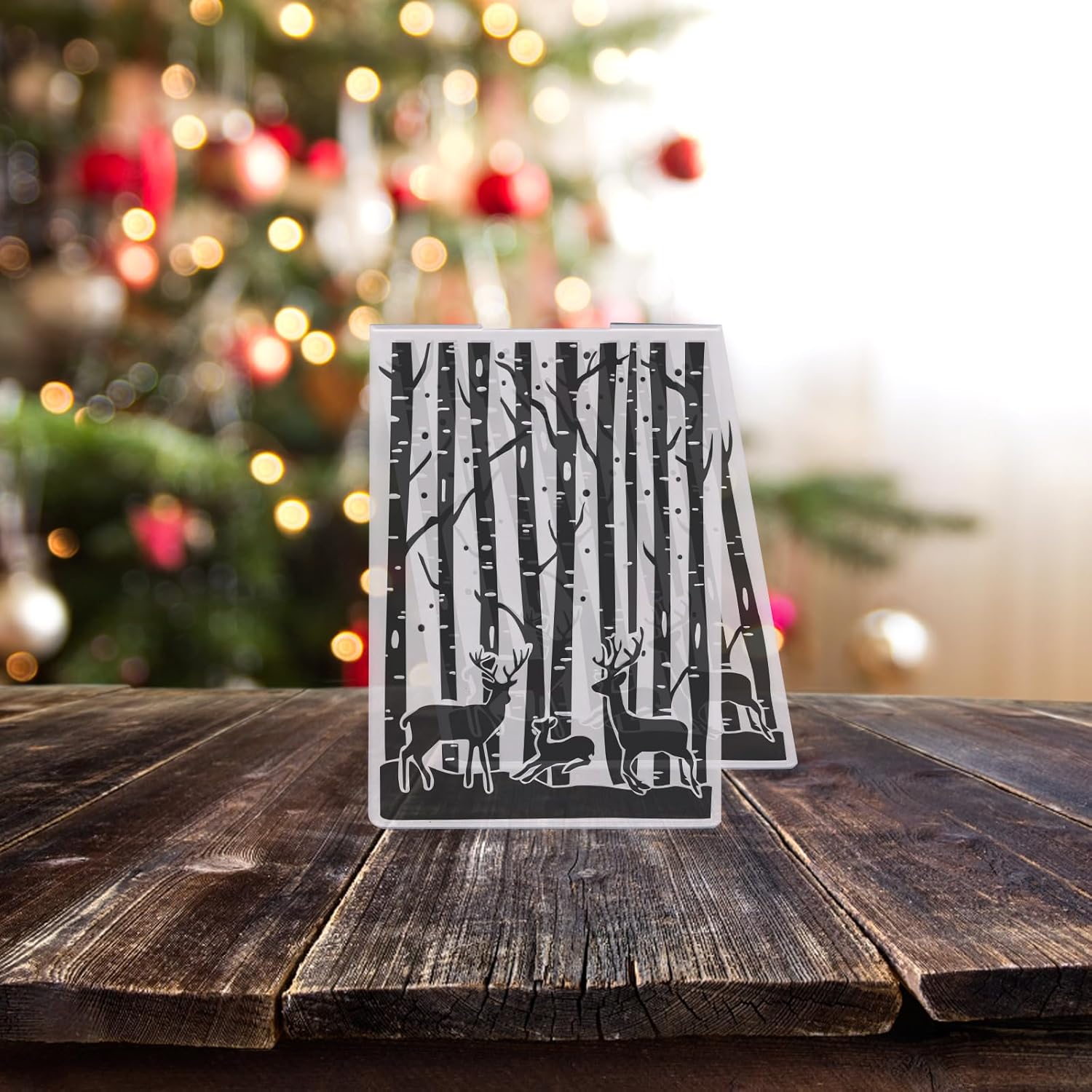 Threetols 3-D Textured Christmas Embossing Folder, Elk Background Embossing Folder for Card Making, Forest Frame DIY Plastic Scrapbooking Photo Album Card Paper DIY Craft Decor Template Mold
