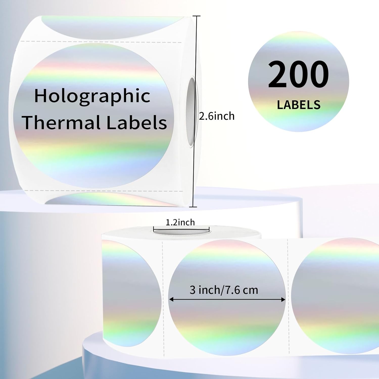 - Holographic Silver Thermal Sticker Labels: Printed on rainbow metallic vinyl, the color of the surface of the sticker can be changed under the light with the move, which is beautiful and charming! Our holographic stickers offer an amazing visual experience like and leave a remarkable impression
