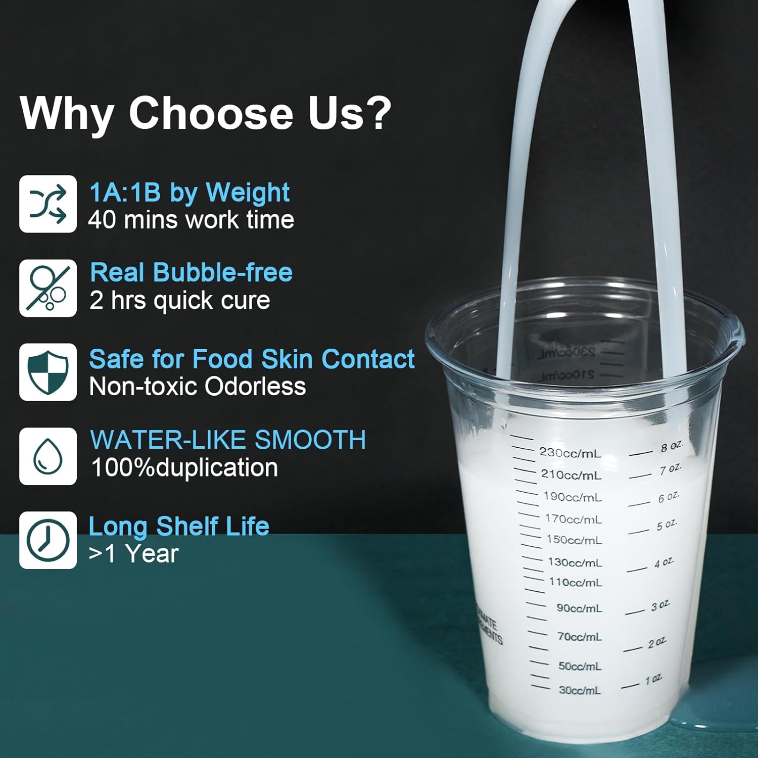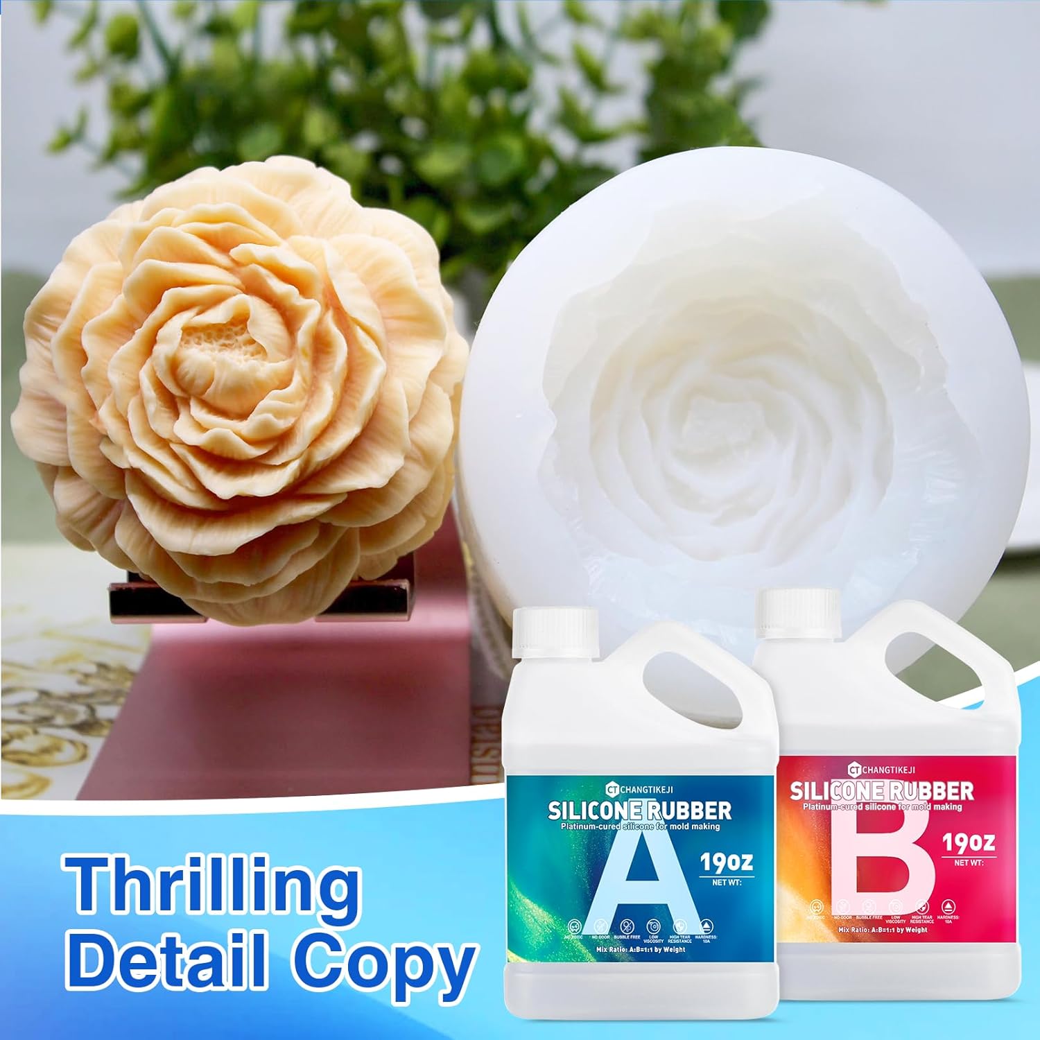 CHANGTIKEJI Silicone Mold Making Kit, 38.8oz 10A Elastic Liquid Silica Gel for Casting Resin molds and Candle & Soap Mold,Fast Cure Translucent Platinum Silicone Rubber