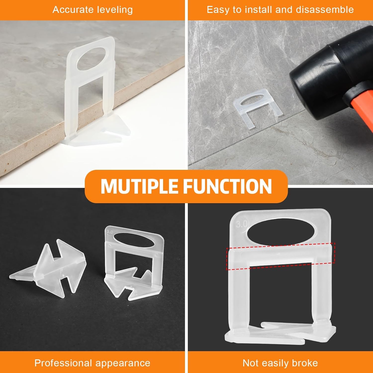 - Easy To Disassemble: We use high quality PVC forged tile spacers, the cut is obvious, thinner and easier to kick off. Avoid the trouble of cleaning caused by incomplete disassembly (warm reminder: Do not push so hard during use tile pliers)