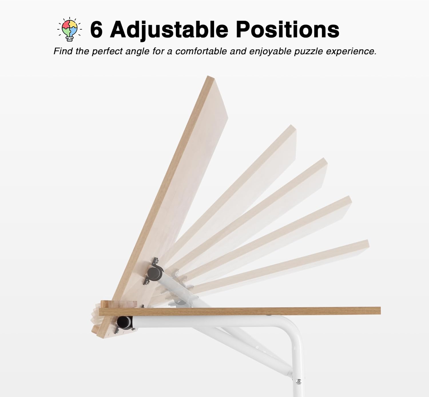 - 【Adjustable Tilt】Enjoy customizable comfort with a tilting surface that offers 6 adjustable positions, ranging from 0° to 70°. Find the perfect angle for a comfortable and enjoyable puzzle experience.
