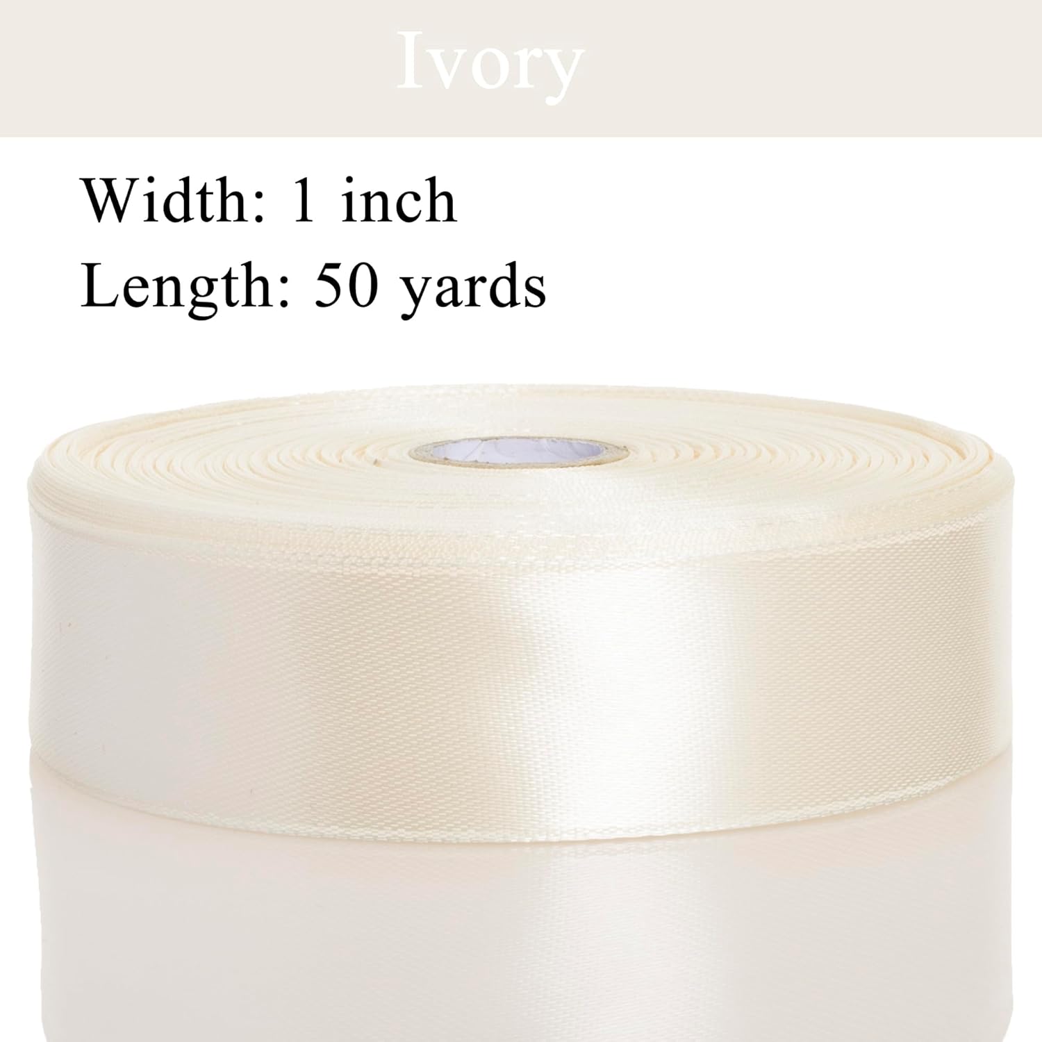 1 Inch Ivory Solid Satin Ribbon, 50 Yards Craft Fabric Ribbon for Gift Wrapping Floral Bouquets Wedding Party Decoration