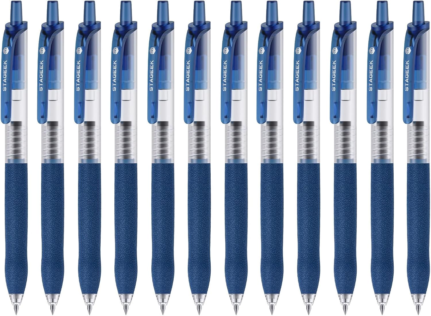 - [12 Pack Gel Pens]: You will receive a 12 pack 0.5 mm fine point blue gel pens, retractable and replaceable refills, convenient and quick. Gel ink pens meet all your writing needs in daily study and work. The pens clip design allows you to attach the pen to notebooks or pockets for easy carrying. You’ll never lose these gel pens