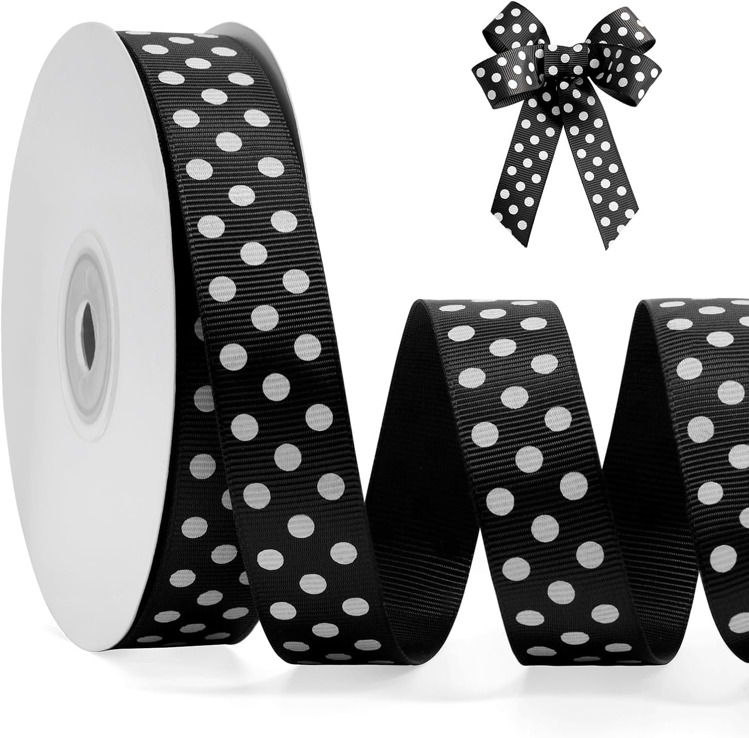 Polka Dot Grosgrain Ribbon 3/4 Inch, 25 Yards Spool Black and White Dot Craft Ribbon for Christmas Gift Wrapping DIY Crafts Hair Bows Wedding Party Decor Sewing and Home Decoration