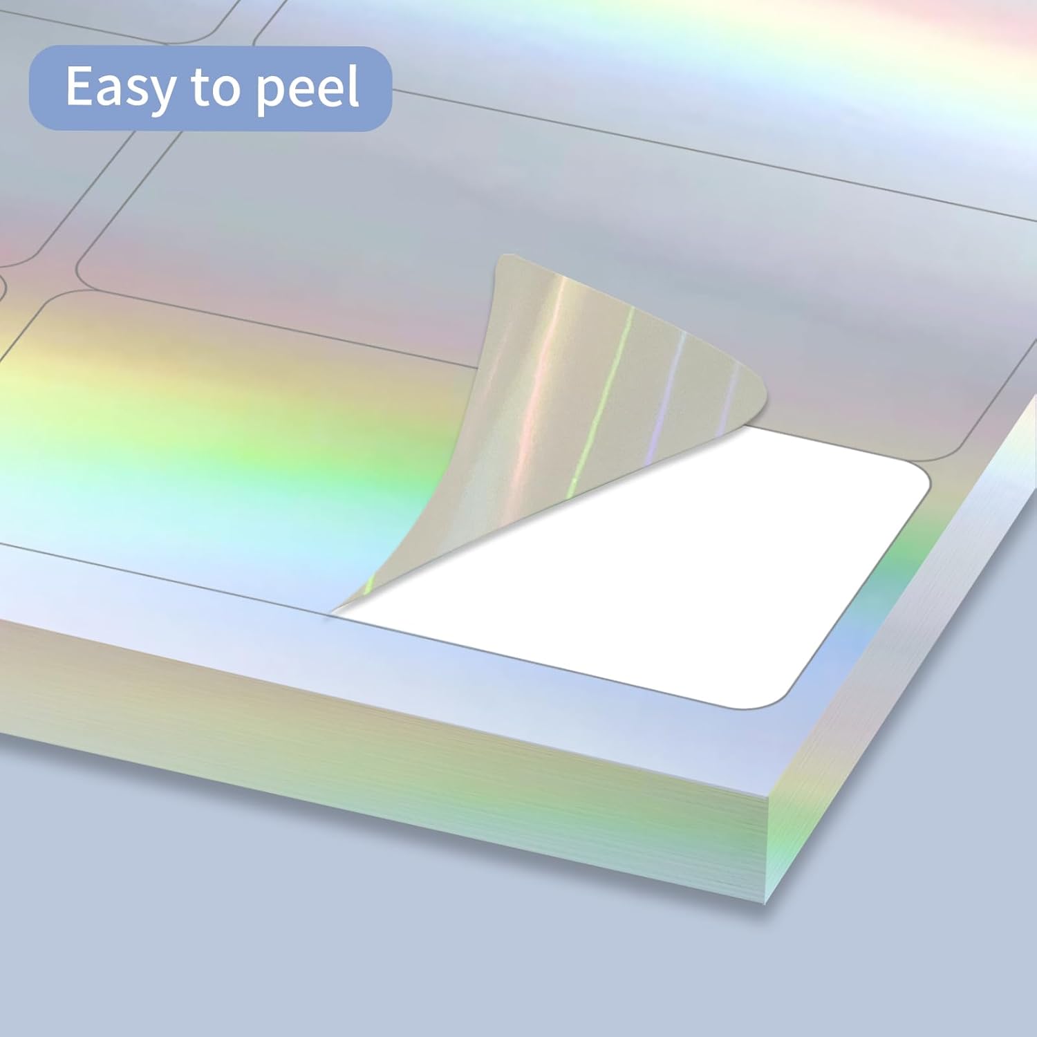 STARLIBOO Shipping Labels Stickers, 2"×4" Printable Holographic Mailing Labels for Laser/Inkjet Printing- Matte, Permanent Adhesive Sticker (Holographic Silver)