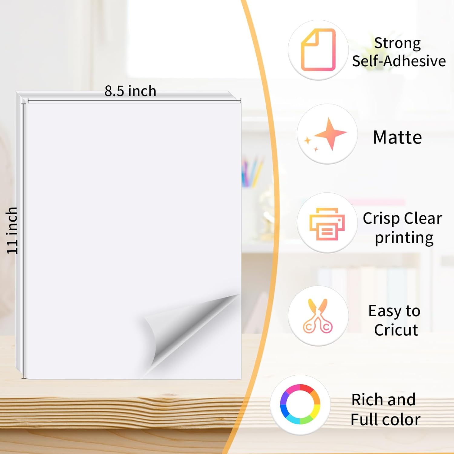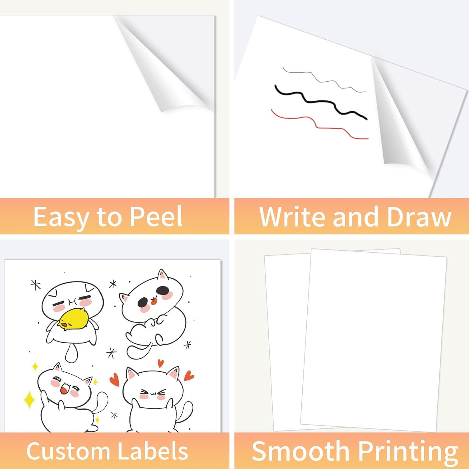 White Printable Sticker Paper, 20 Sheets Printable Sticker Paper, Laser/Inkjet Printing- Matte White, Letter Size (8.5" x 11")