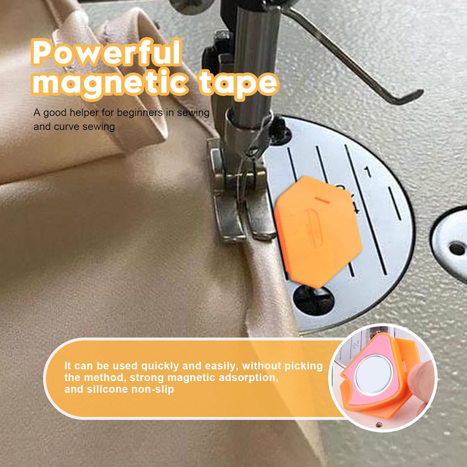 Pcmursal 4 Pieces Magnetic Seam Guide for Sewing Machine, Upgraded Multi-Purpose Tool Polygonal Magnetic Seam Guide with Scale, Sewing Supplies and Accessories (Orange)