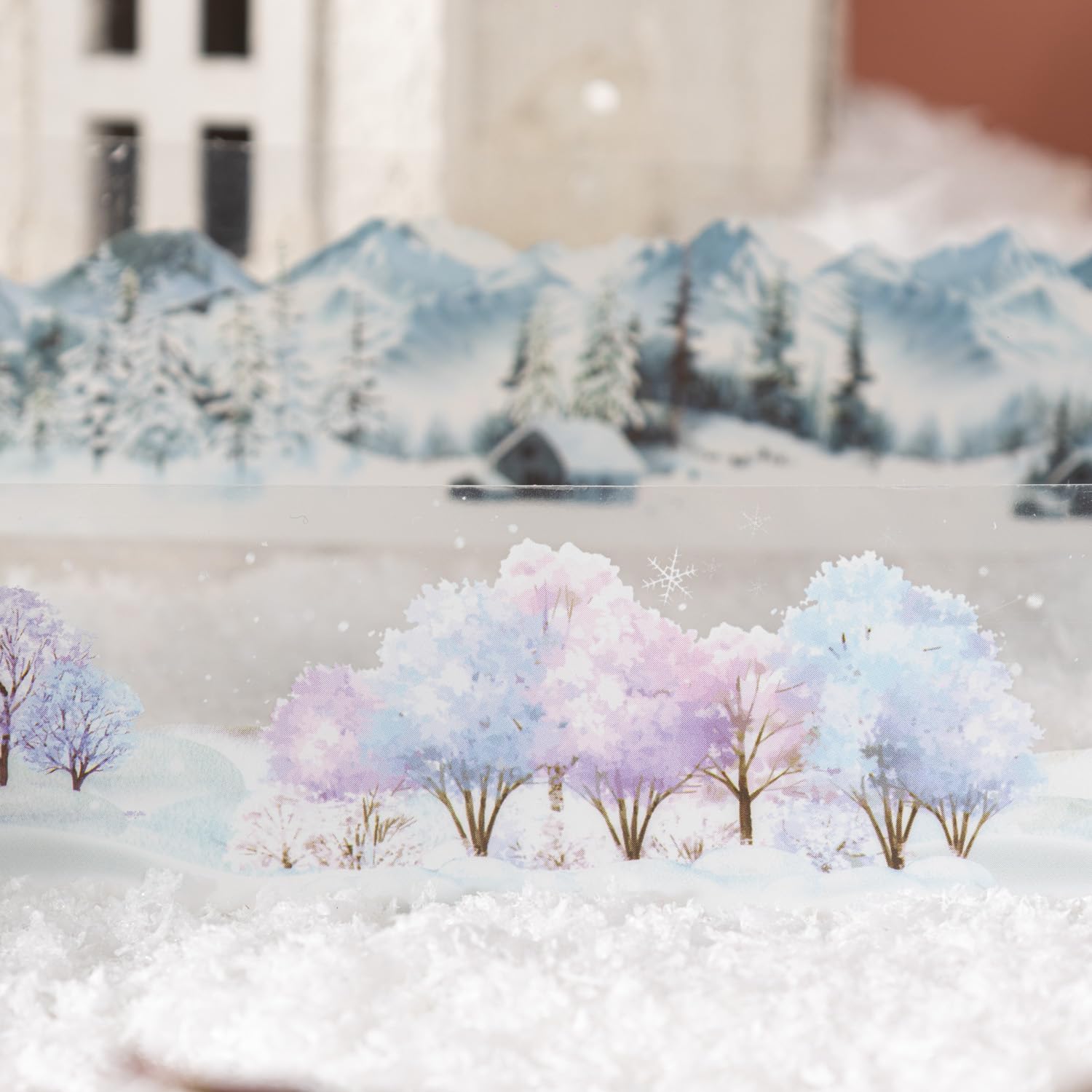 - Enchanting Winter Scenery Designs: Each PET tape roll features a unique winter scene, from snowy landscapes to charming villages and wildlife. Ideal for adding seasonal warmth to journals, scrapbooks, and DIY projects, creating a cozy winter wonderland wherever you use it
