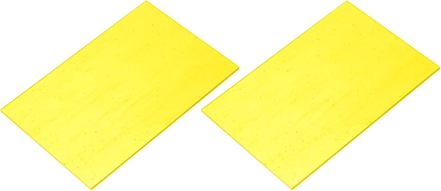 MECCANIXITY 2 Pcs Stained Glass Sheet Mosaic Tile 7.9 Inch x 5.9 Inch Bright Yellow Stained Glass Sheets for Crafts DIY Art Project