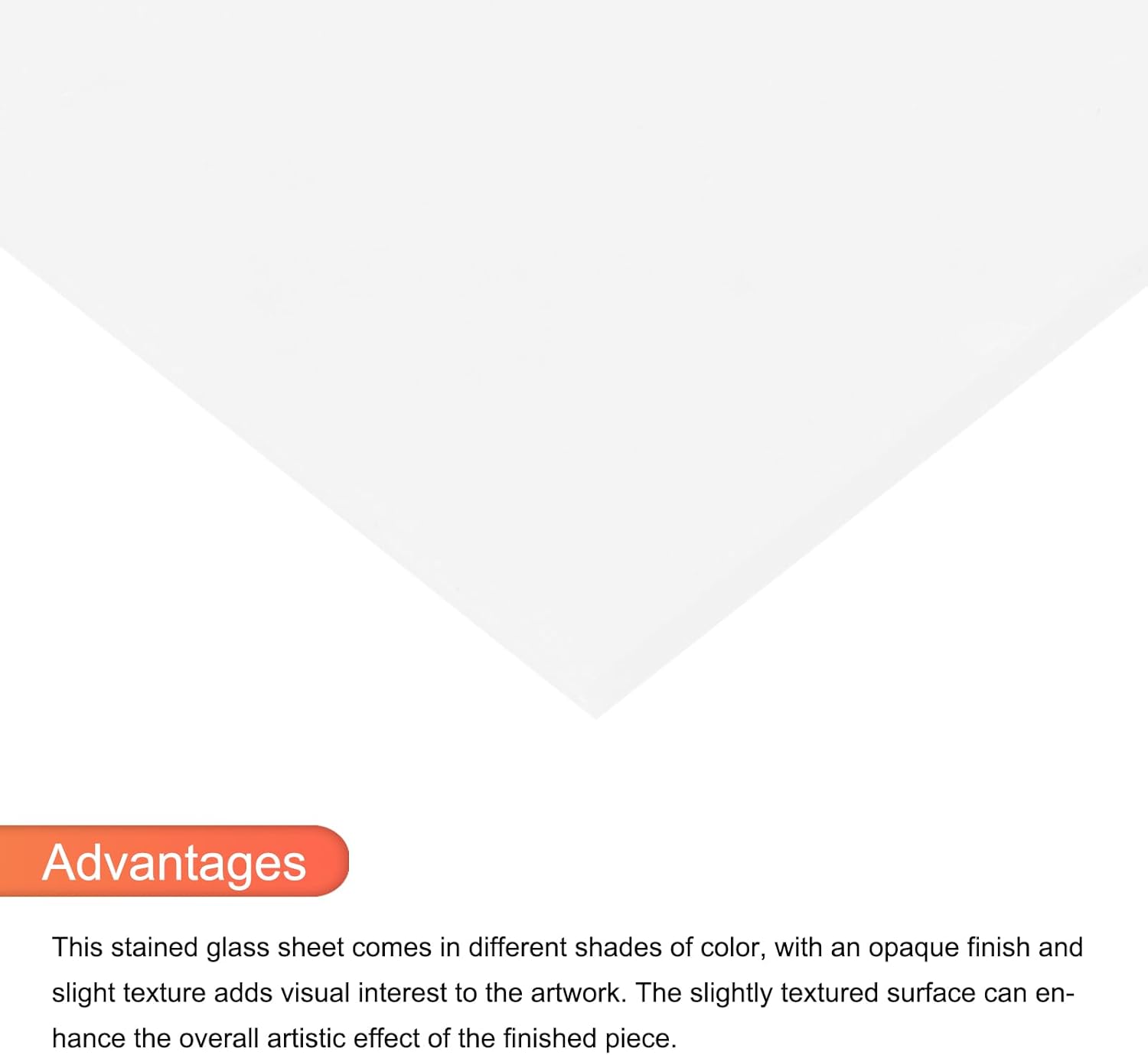 - Material: Glass; Color: White; Size: 7.9 Inch x 5.9 Inch; Thickness: 1/10 Inch; In the package of: 2 Pcs x Stained glass sheet.