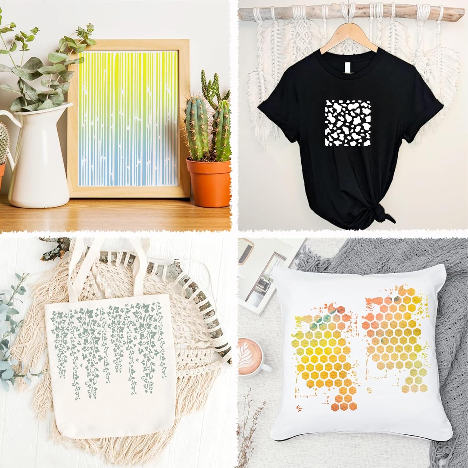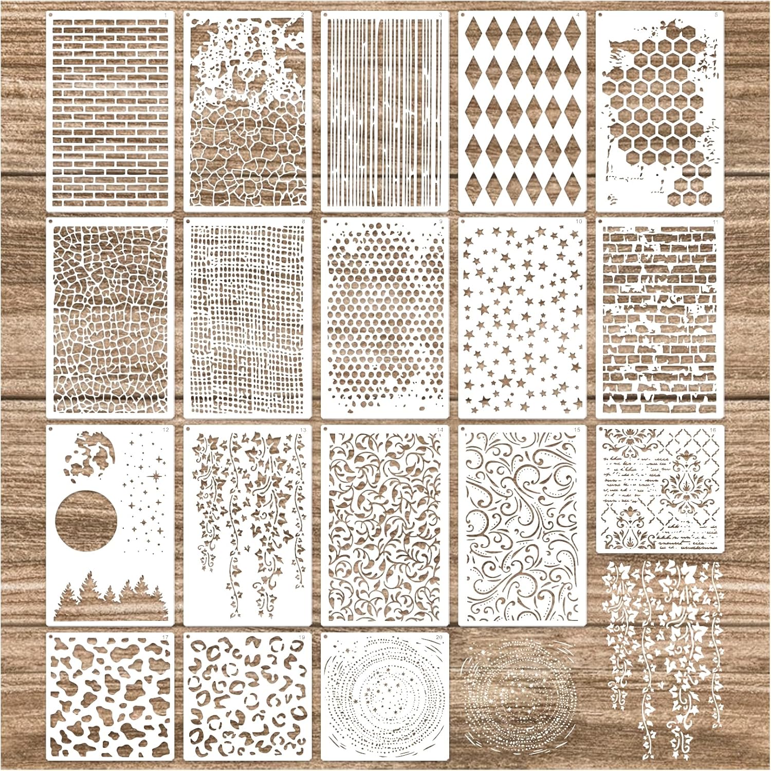 - Enjoy funny: use large and small 20pcs texture stencils for crafts reusable spray painting designs to show your DIY art project with your family and friends on table, shoe, wall, wood, cabinet at home.