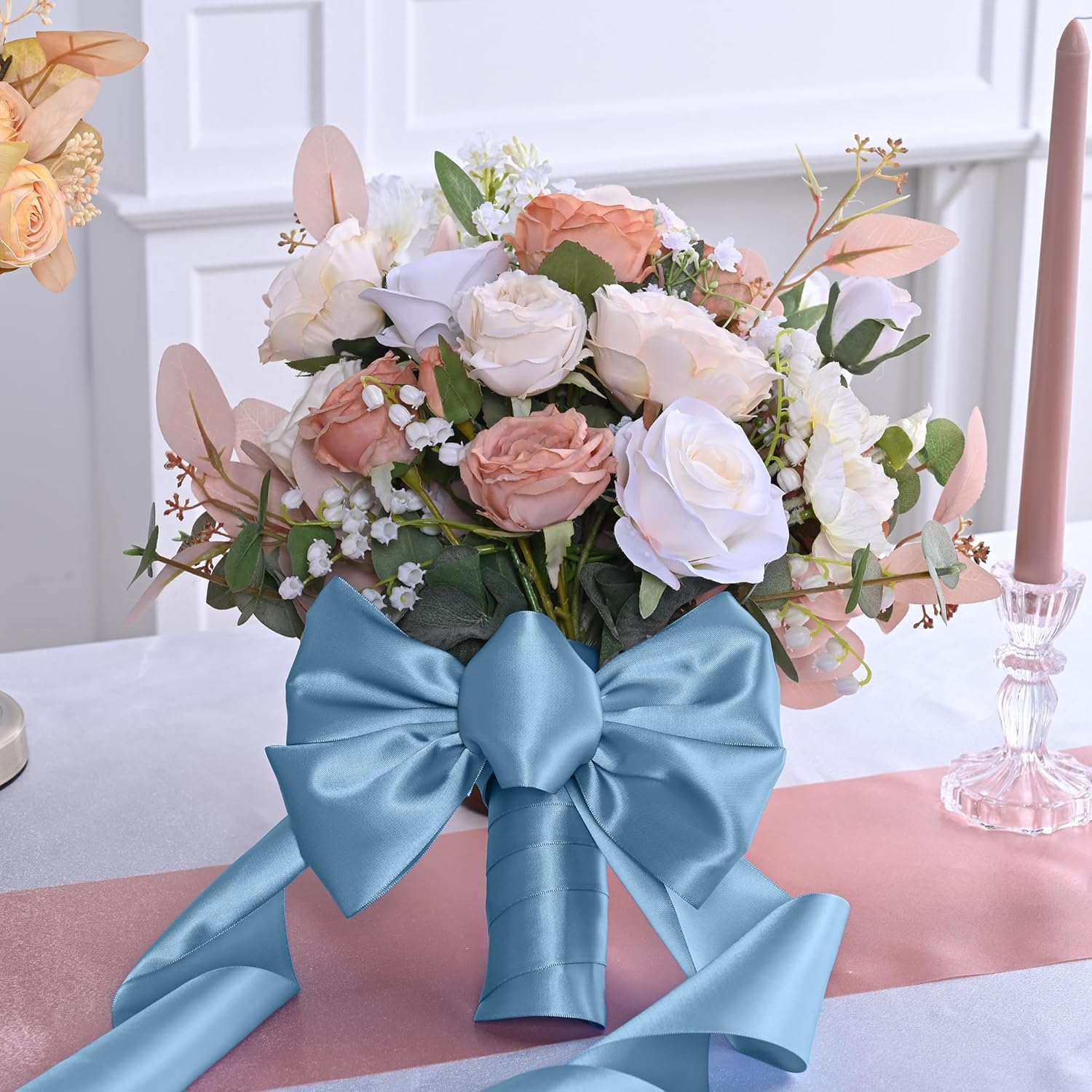- 【Dusty Blue satin ribbon】Double face satin ribbon total 15 yards, 3 inch.Quantity can meet your daily needs well.