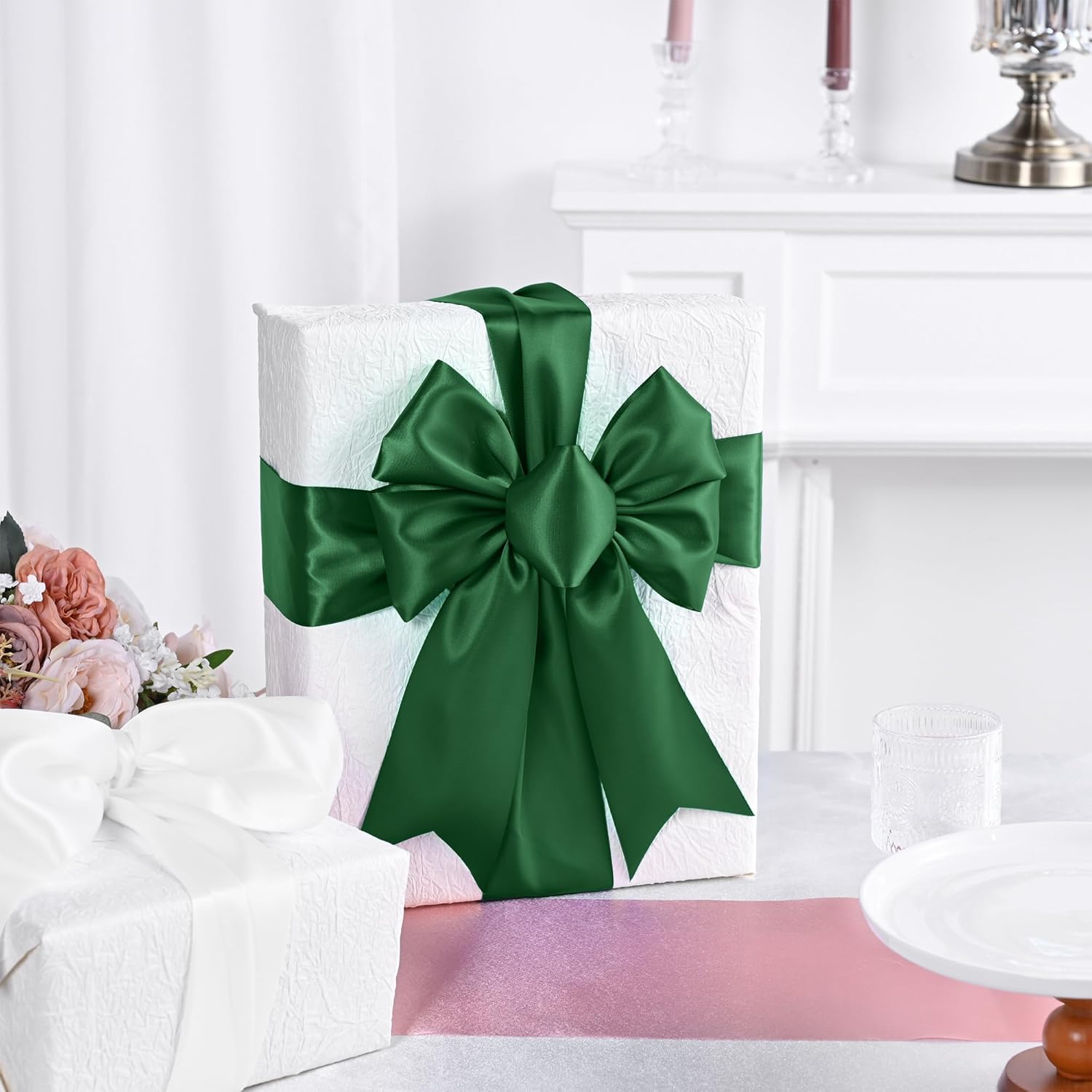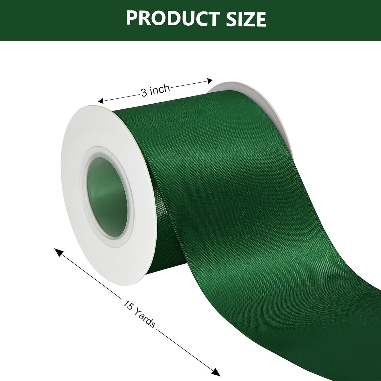 - 【Forest Green satin ribbon】Double face satin ribbon total 15 yards, 3 inch.Quantity can meet your daily needs well.