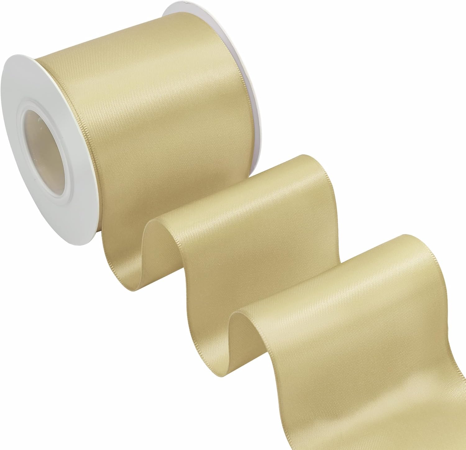 Champagne Gold Satin Ribbon 3 Inch X 15 Yards Solid Color Double Faced Ribbons Perfect for Crafts Wedding Decor Bow Making Arts Sewing and More