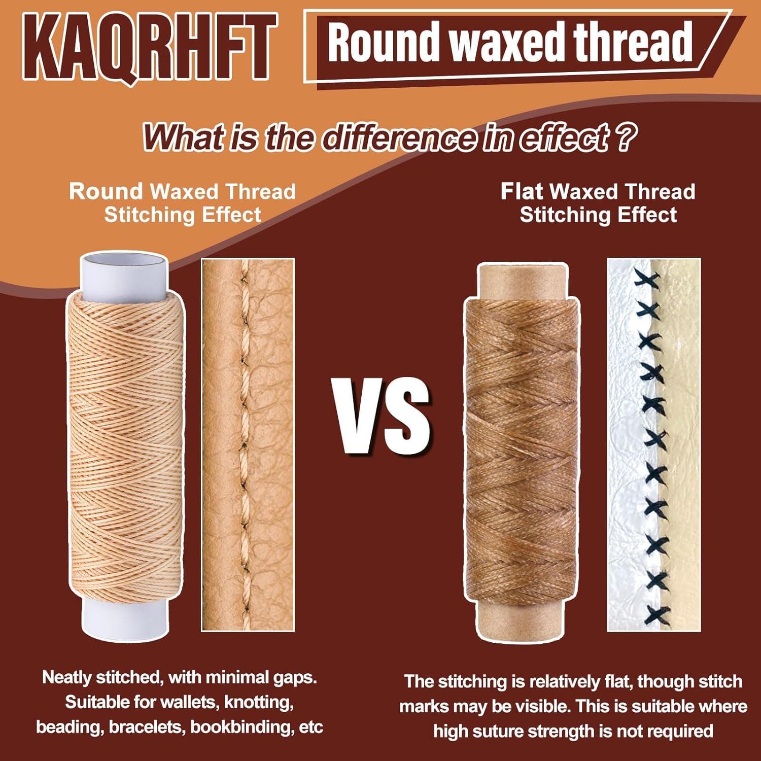 - Easy to Use: Round wax thread differs from flat wax thread, compared to flat wax thread, which sometimes catches or twists, round wax thread offers a more aesthetically pleasing sewing result, it is suitable for various leather craft products, such as wallets, handbags, It can also be used in micro-braiding, knotting, and beading to create tassel bracelets and jewellery, etc