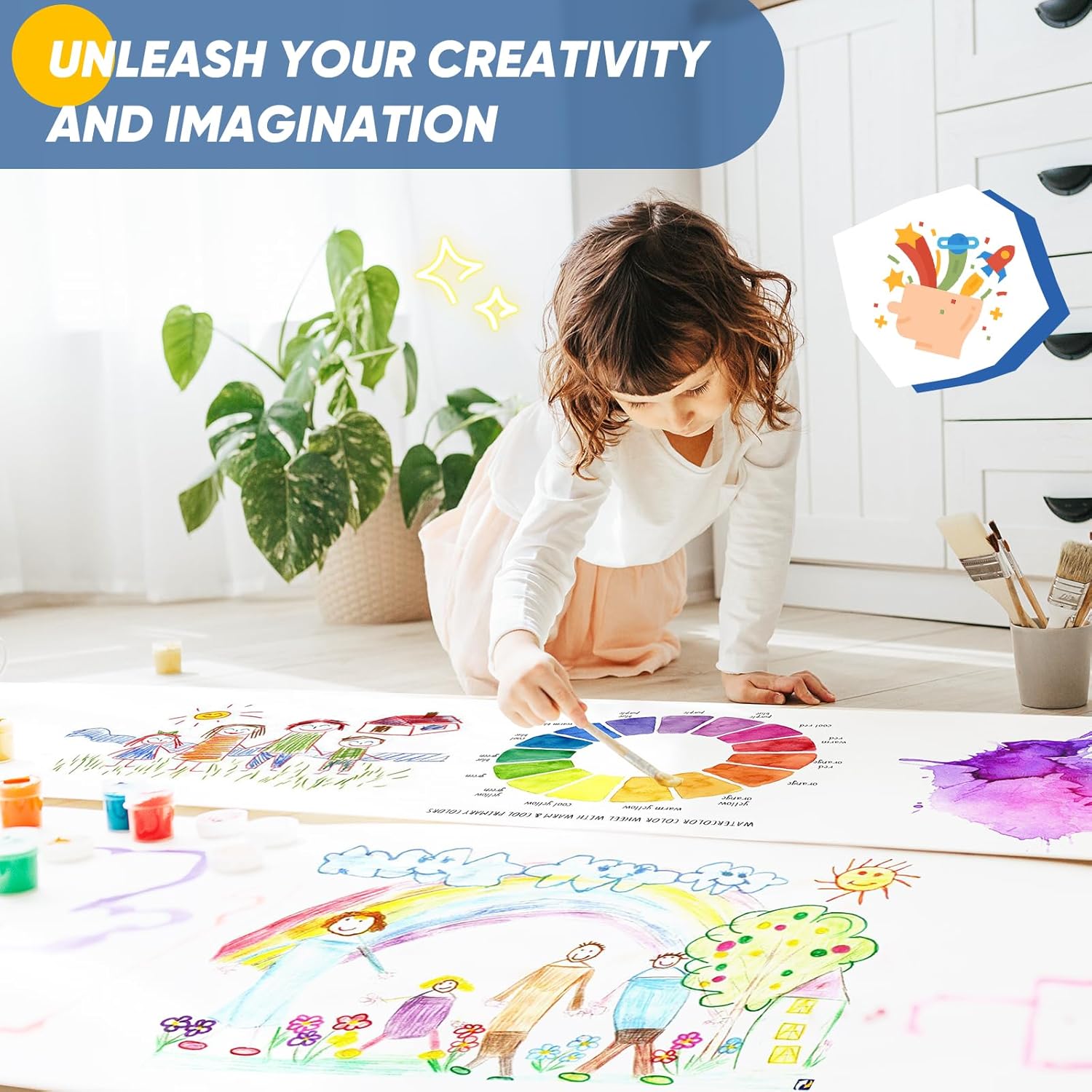 - 【Works with Different Materials】 Our kraft paper is unwaxed and uncoated, which means long-lasting art that won't fade away with time. Moreover, it is crafted from natural, child-safe materials. You can use this craft paper roll with acrylic paints, oil paints, chalk, crayons, markers, gel pens, felt tip pens, fine point pens, watercolors, colored pencils, finger paints and tempera, and there is no smearing or bleeding to protect your table from the different art mediums.