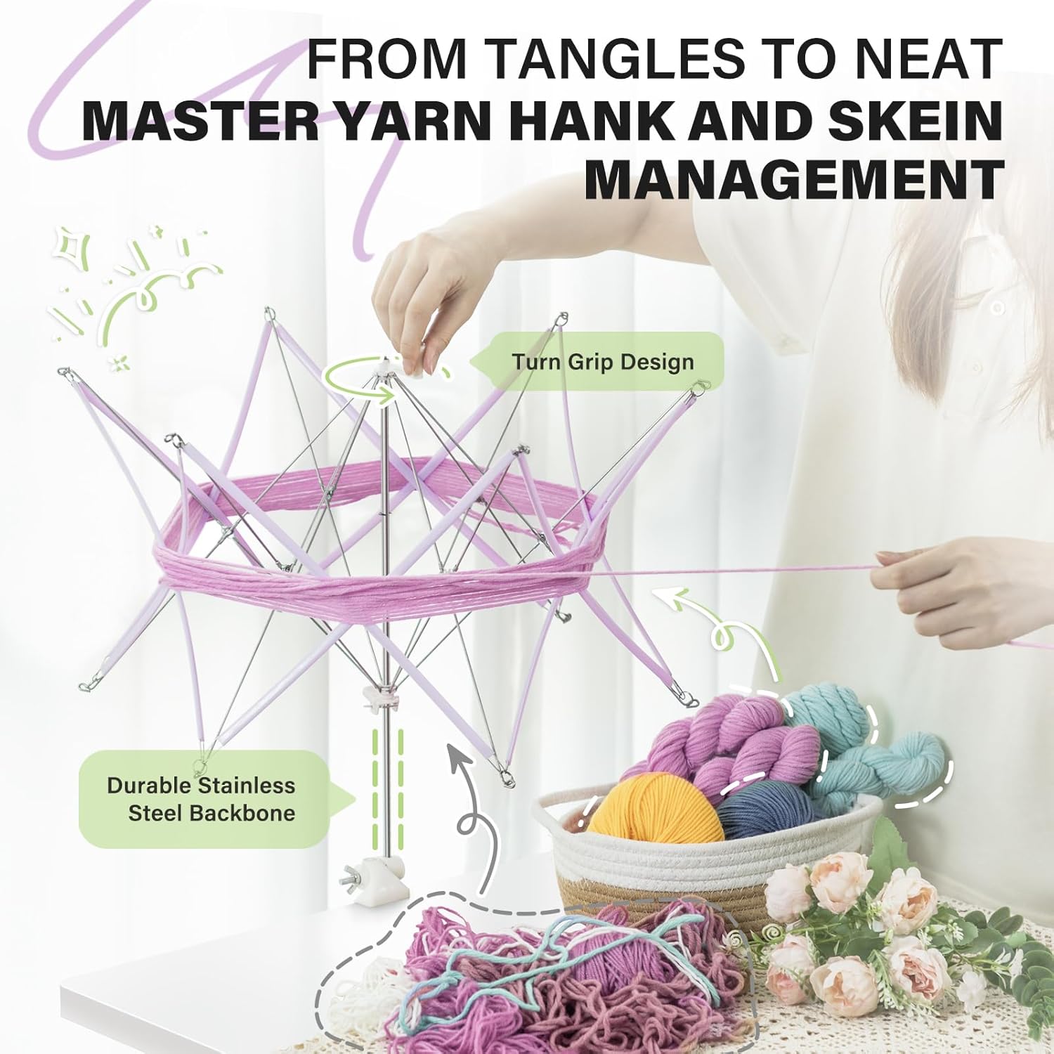 - Thoughtful Design: The Yarn Swift can be used with yarn winder to help you create a beautifully organized yarn ball within minutes.And it features a durable and flexible coil structure that provides stable support for yarn. With a spring button, it allows for size adjustment, accommodating yarn diameters of up to 23.6 inches (60cm). It makes your knitting collection neat and tidy.