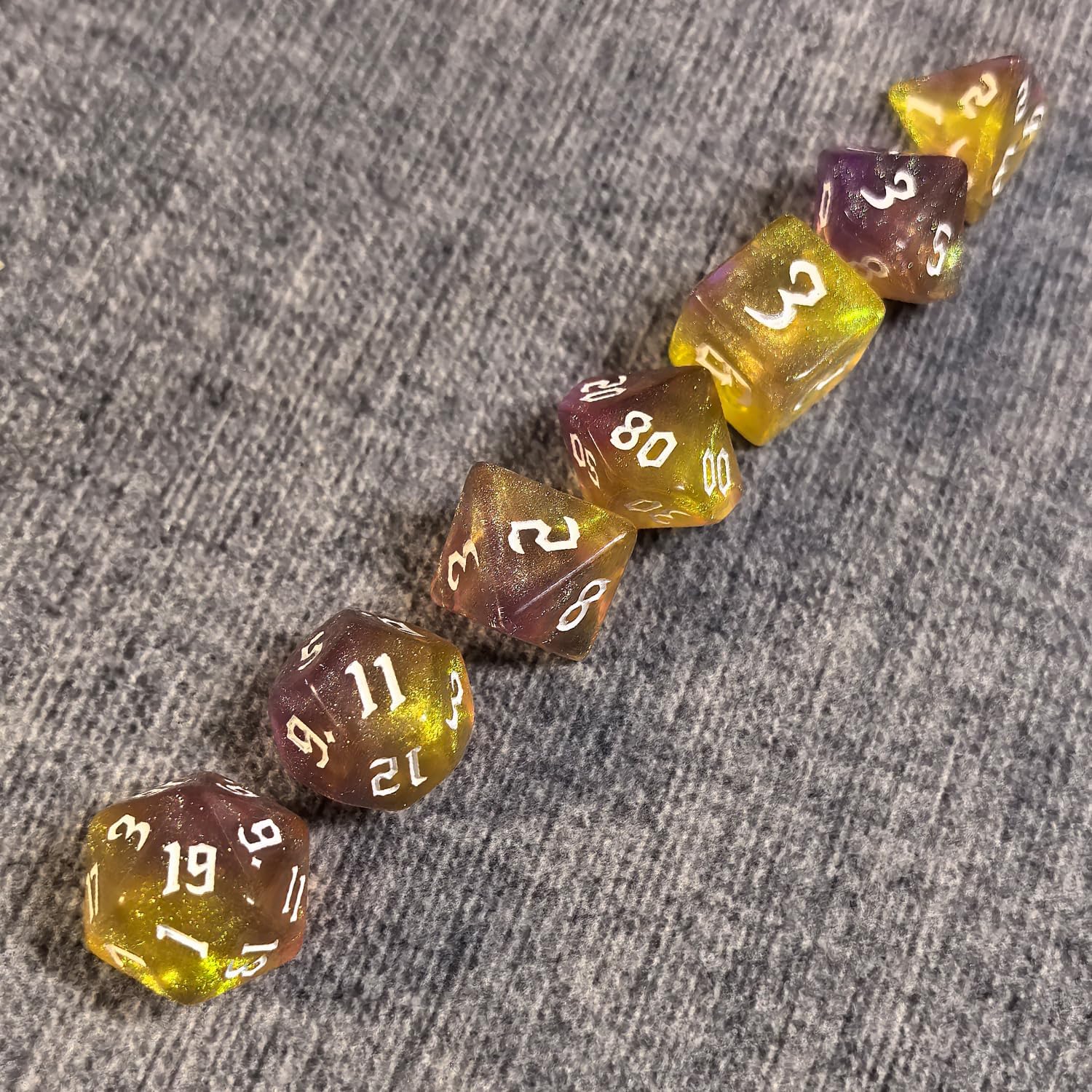 - Vibrant 7-Piece Set: Includes D20, D12, D10, D%, D8, D6, and D4, offering a style perfect for everyone.