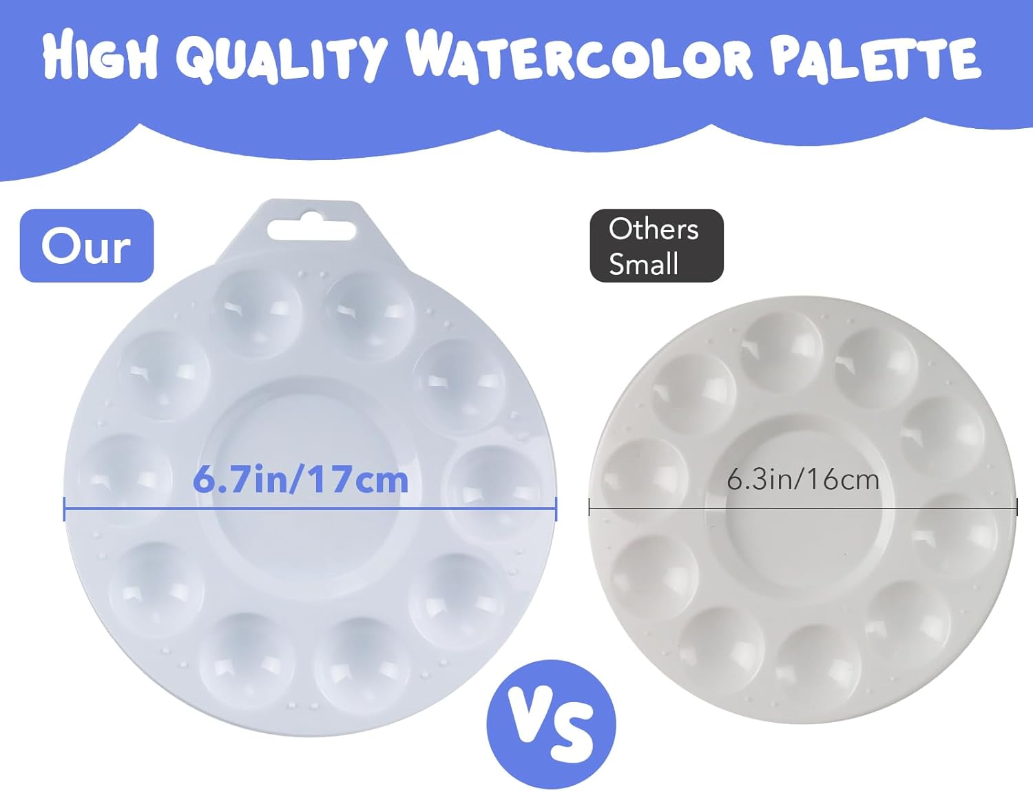 - 🎨【High Quality Watercolor Palette】Crafted from premium plastic, our palette tray boasts meticulous polishing that results in edges that are impeccably smooth and devoid of any burrs, providing artists with a comfortable grip during use. The tray's thoughtfully designed circular wells enable precise color selection, empowering artists to execute every brushstroke with unparalleled accuracy and intention, enhancing their creative process and the final output of their artworks.