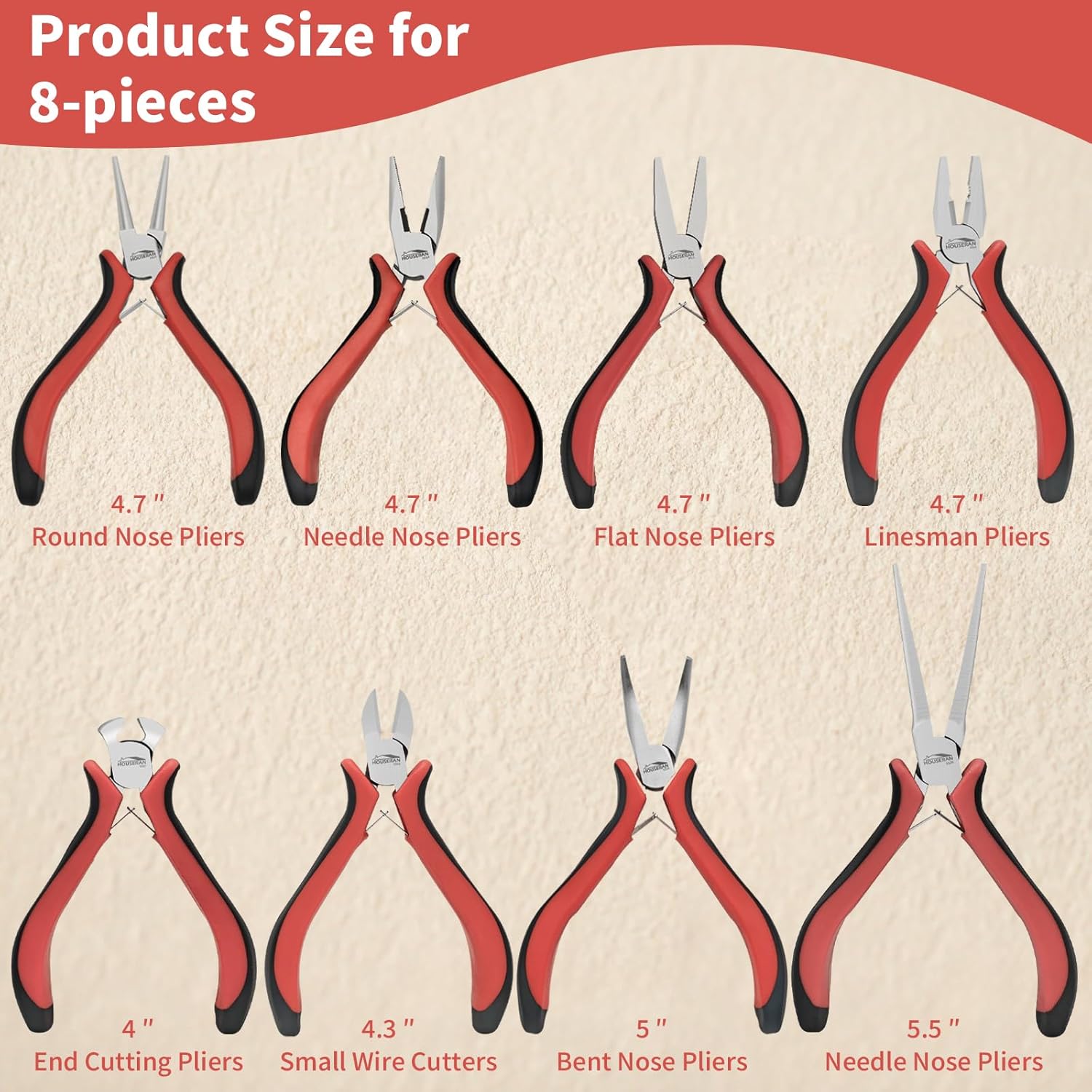 8 Packs Jewelry Pliers Set, Jewelry Making Tools with Needle Nose Pliers, Wire Cutters, Round Nose Pliers, Bent Nose Pliers