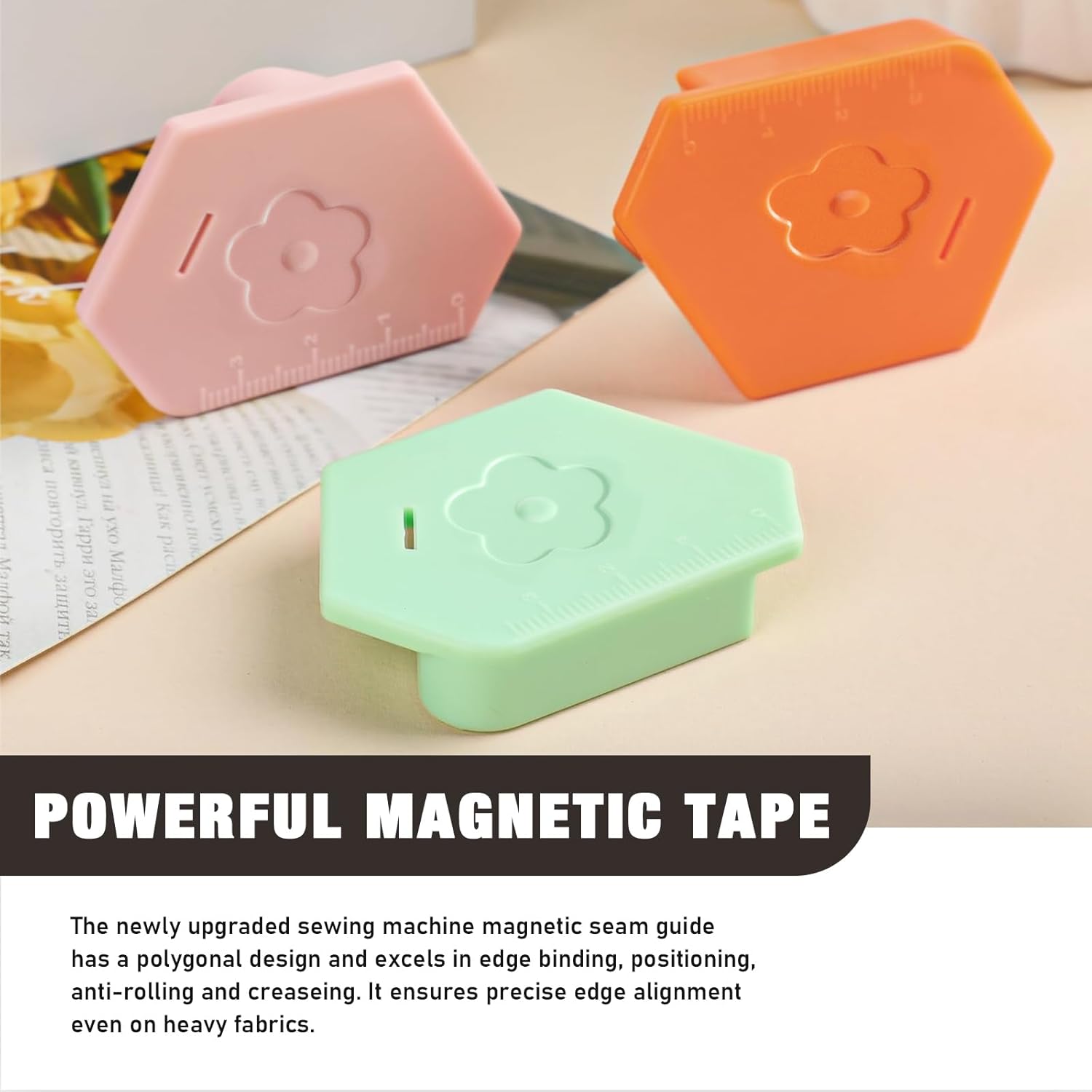 Wshxjzyay 3 Pack Magnetic Seam Guide for Sewing Machine, Upgraded Multifunctional Polygonal Hemmer Guide with Scale, Universal Sewing Accessory for Magnet Making Machine (3 Colors)