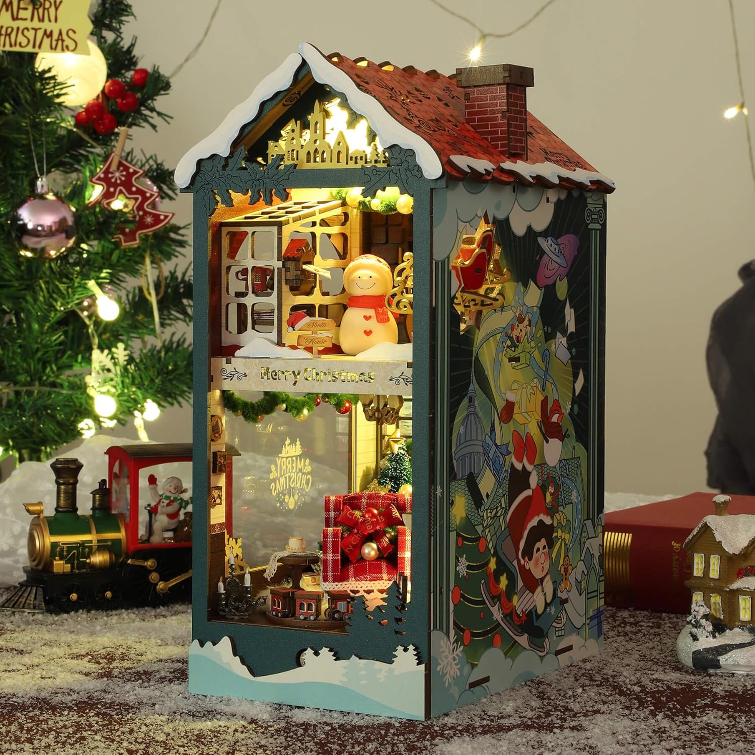 Christmas Book Nook Kit - DIY Miniature House Dollhouse Kit for Adults and Teens, Booknook Bookshelf Insert Christmas Decorations, Gifts for Family and Friends (Merry Christmas)