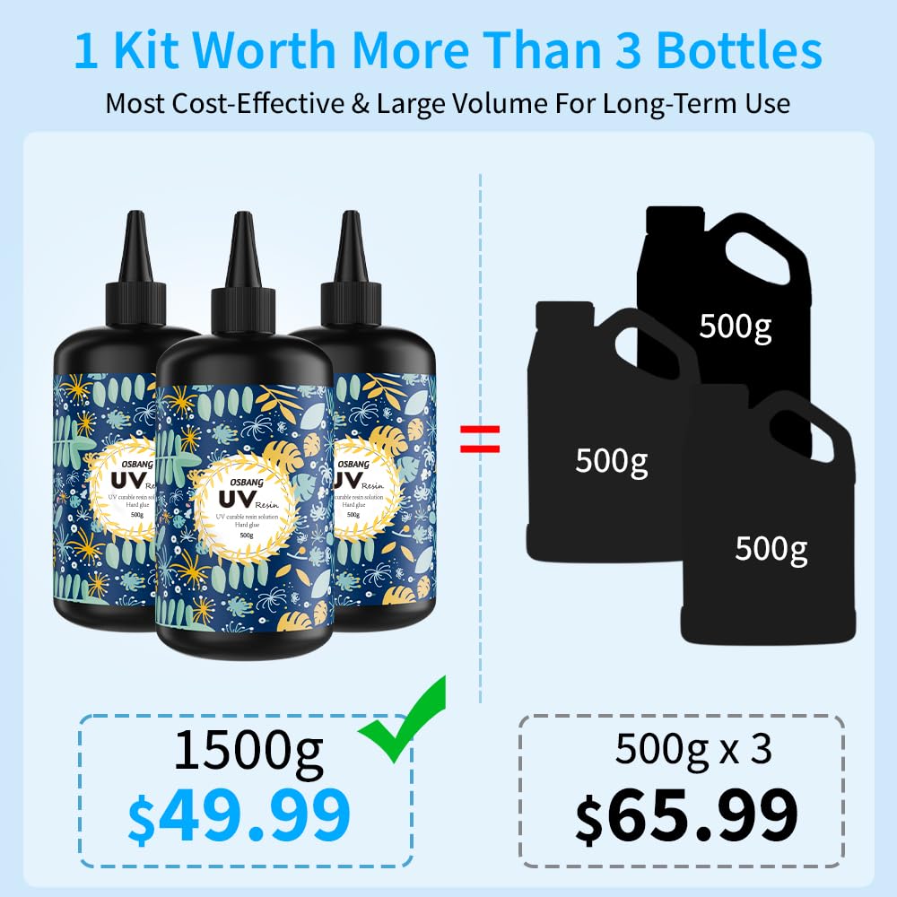 - UPGRADE FORMULA&CURED FULL : Improved for reduce sticky and tacky issue; extremely clear, low shrinkage, and yellowing resistance. Curing in minutes with 36W UV lamp. Please note that The darker color added, the longer UV resin curing