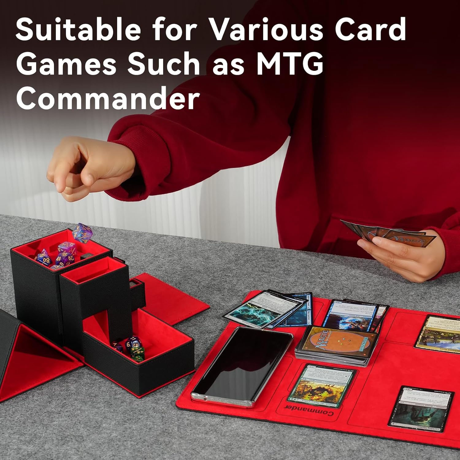 Dice Tray & Dice Tower Storage Box, 3 in 1 Dice Holder Case (Dice Rolling Tray, Dice Rolling Tower, Dice Storage Drawers), Leather Magnetic Closure DND Accessories Gifts for RPG MTG, Black/Red