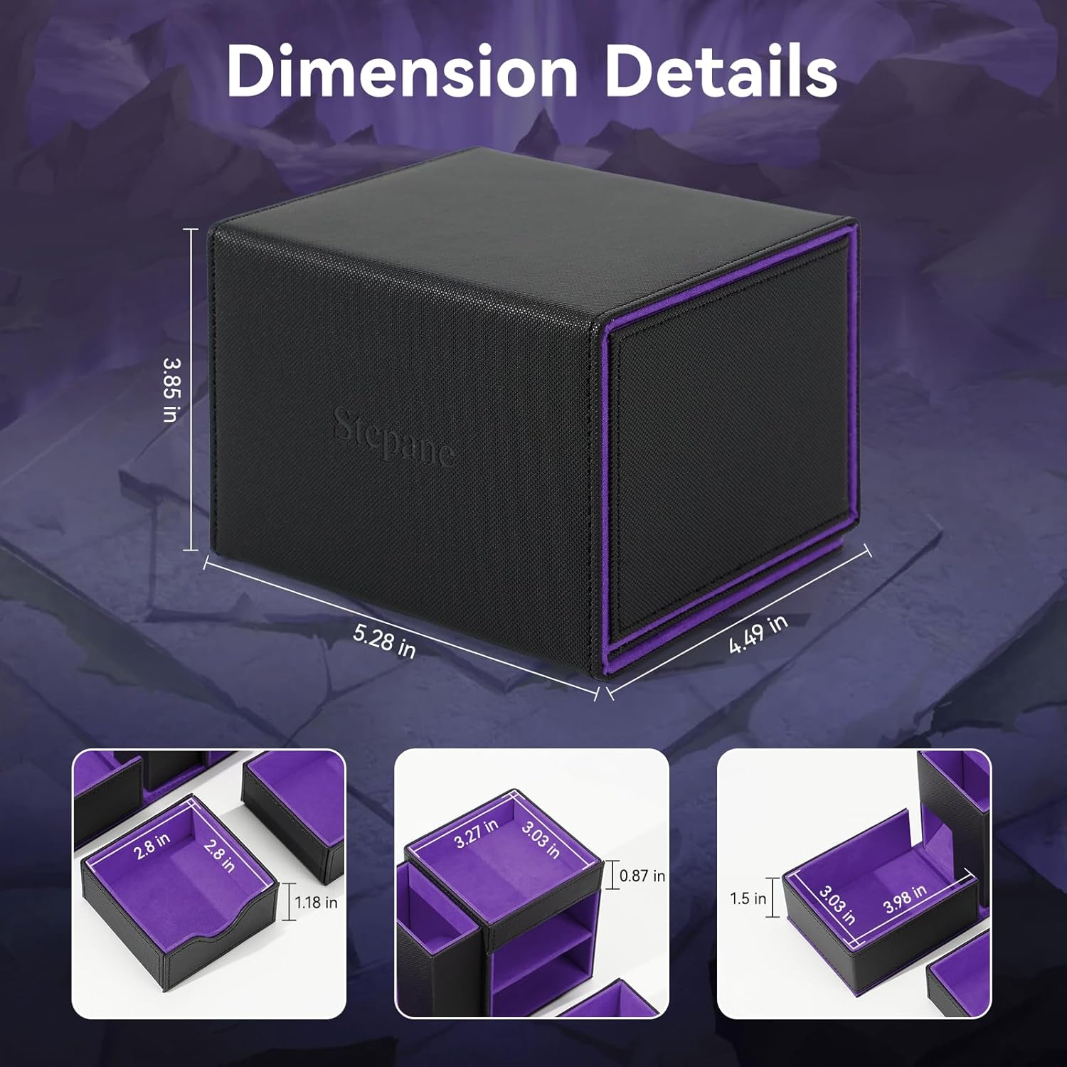 - High-capacity Storage: The Stepane Dice Box's tiered design increases storage capacity while ensuring a more compact overall; with two organizer drawers and an open platform large enough to hold two sets of standard gaming multi-sided dice, you are free to place your gaming accessories in an thoughtful and comprehensive design